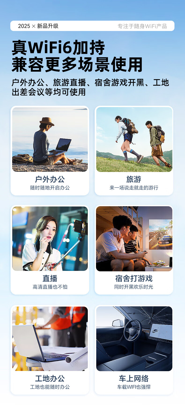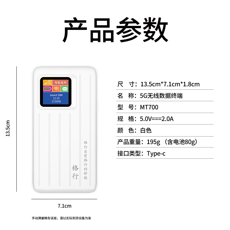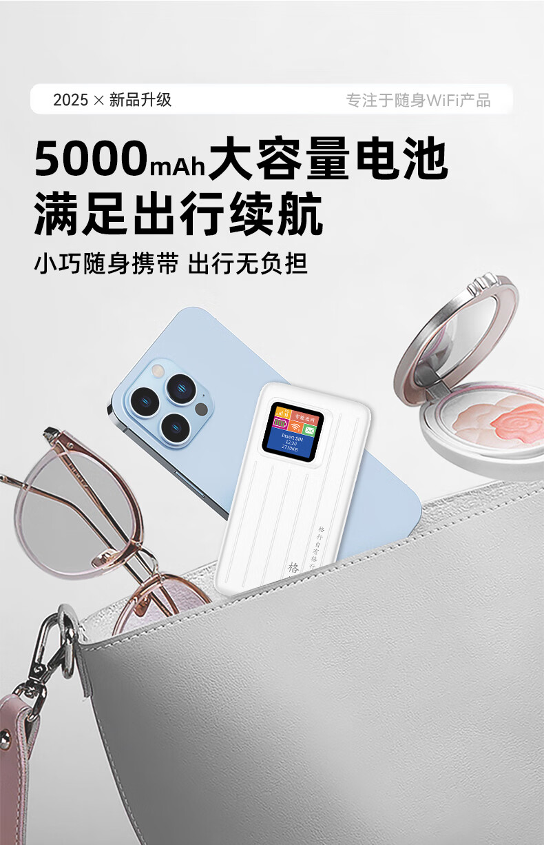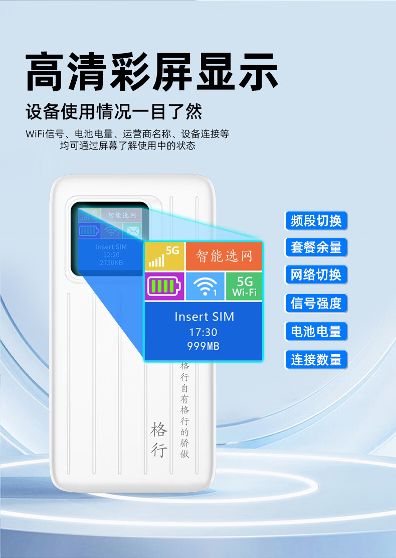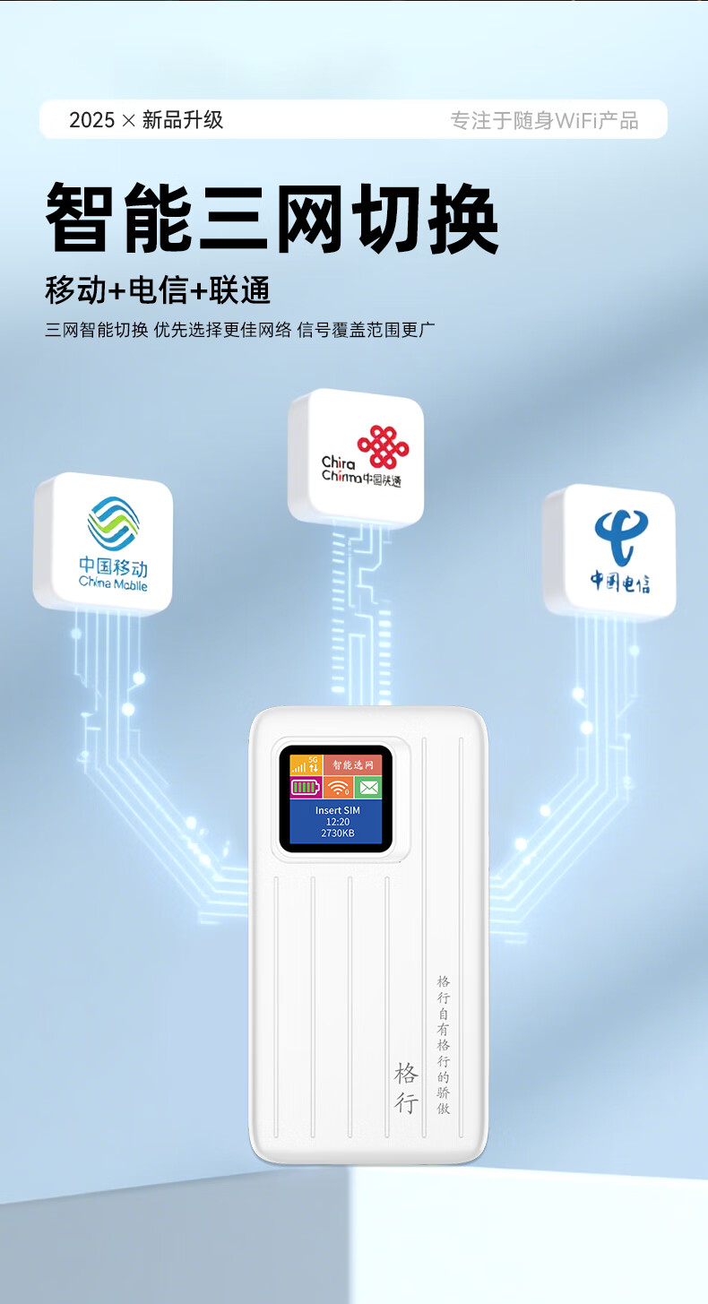 格行MT700格行随身wi-fi6 5g流量2025款三网通三网按键切换移动上网商旅/直播/户外专用 格行5G-三网切换-免费试用-带有屏幕彩屏款