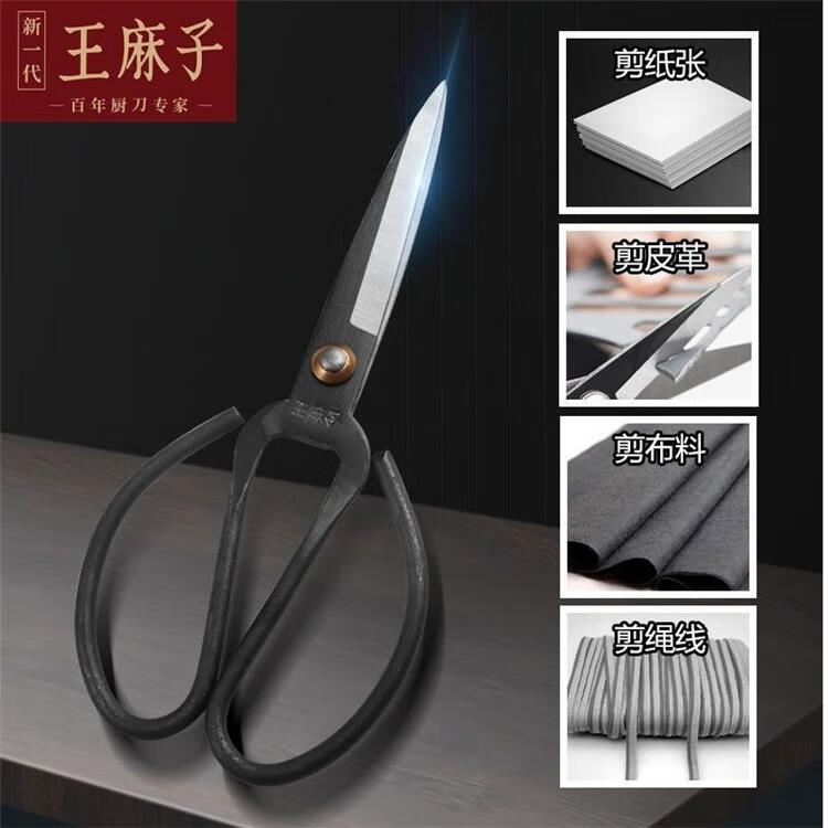 Wang Mazi scissors, household authentic sharp manganese steel express cutting, cloth cutting, pointed hand scissors, paper scissors, good quality) old-fashioned black casing-free scissors_a pair