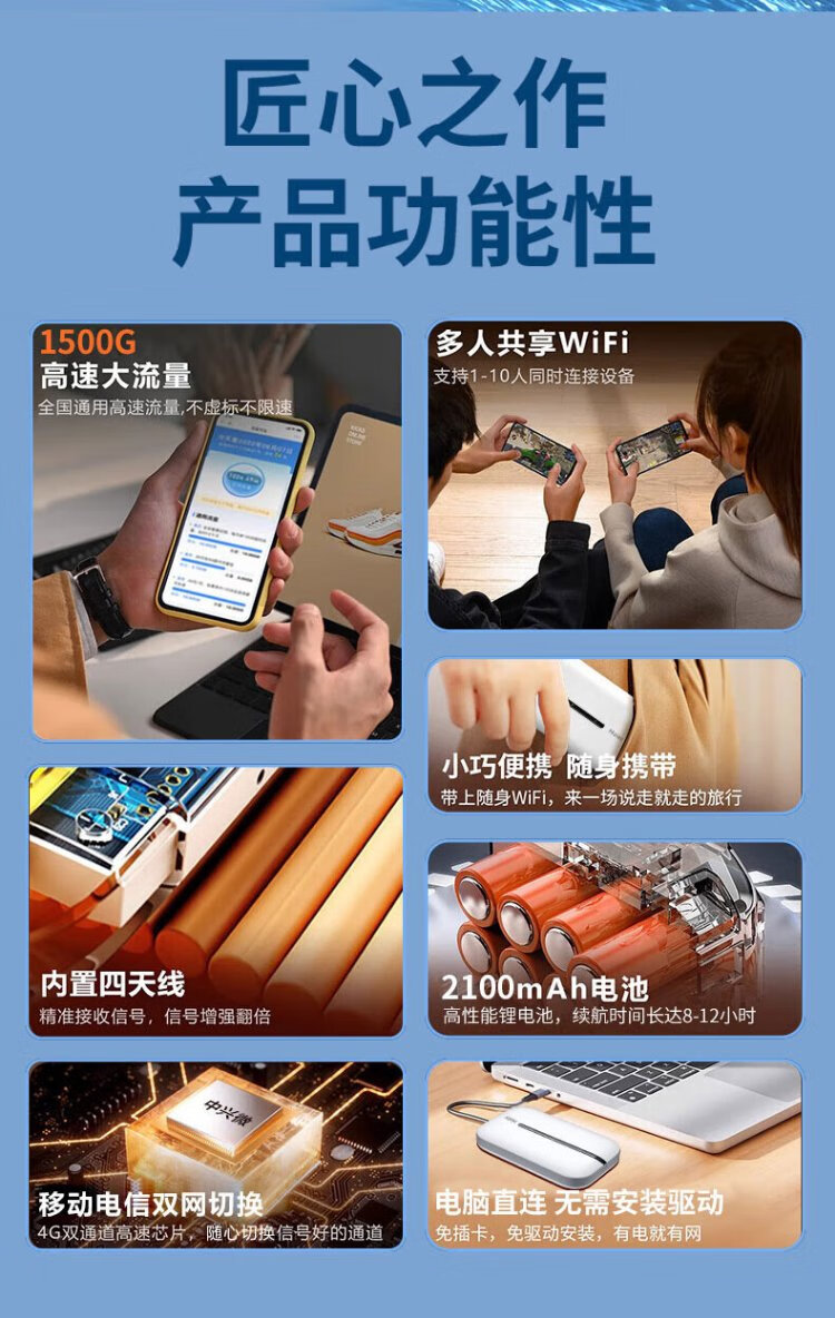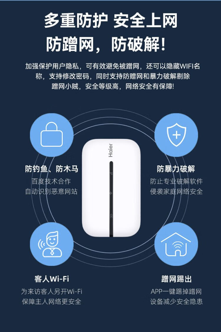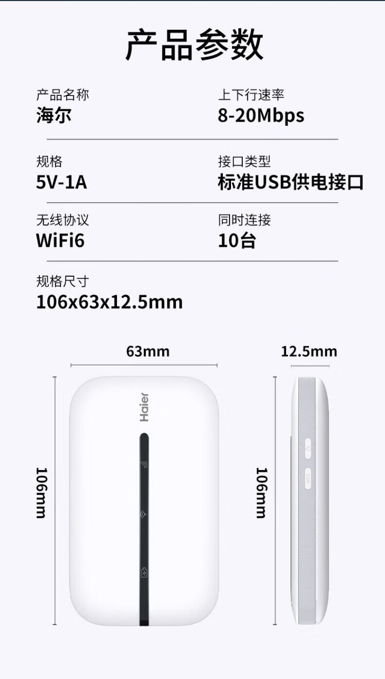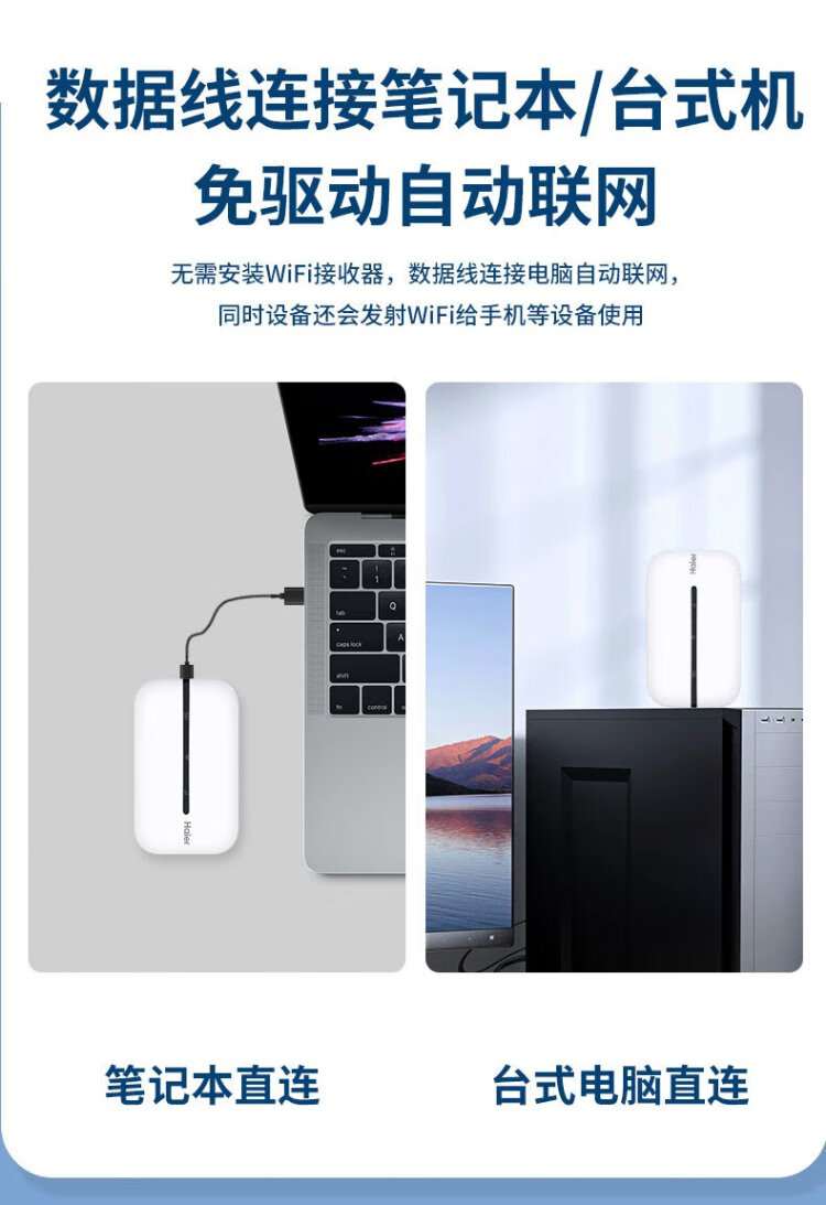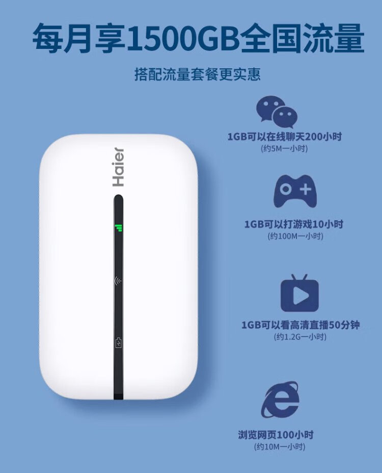 Haier portable wifi removable wireless wifi6 card-free Internet treasure accompanying wireless network card portable car 4g unlimited router national universal traffic 2024 model 1500G traffic 丨 90 days free trial 丨 6 years only replacement without repair