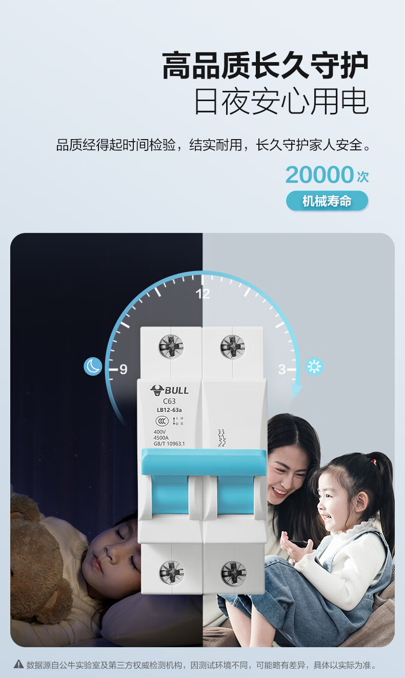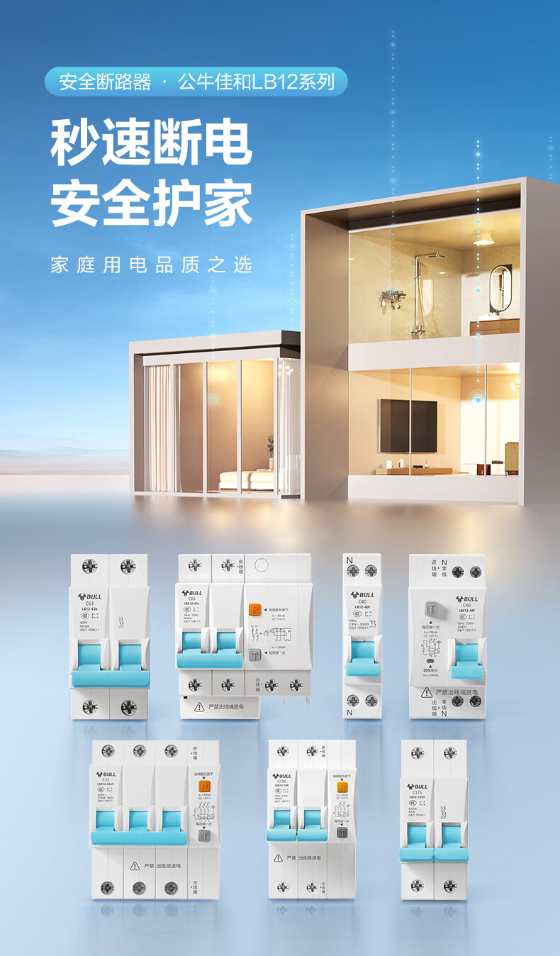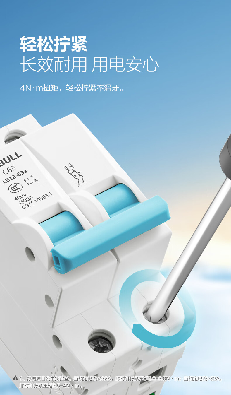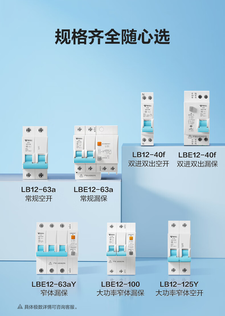 Bull (BULL) air switch leakage circuit breaker three-phase four-wire overload protector 2p63a household leakage protection 3p32a 3P 100A circuit breaker upgraded narrow body
