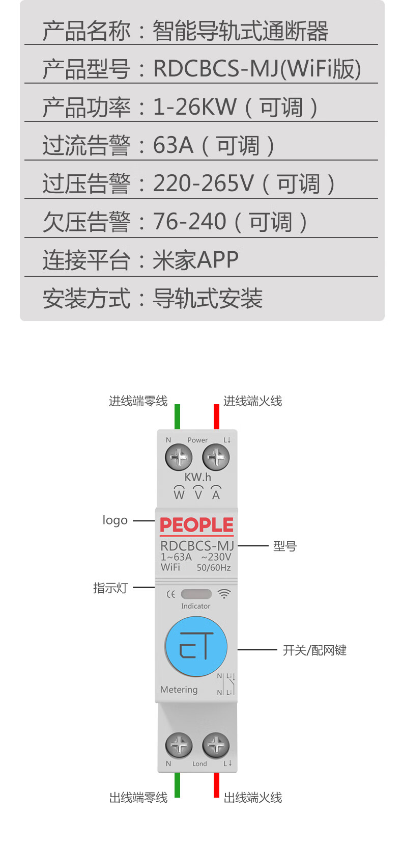 人民电器已接入米家wifi智能断路器定时计量家用手机远程控制智能开关 RDCBCS-MJ-1P