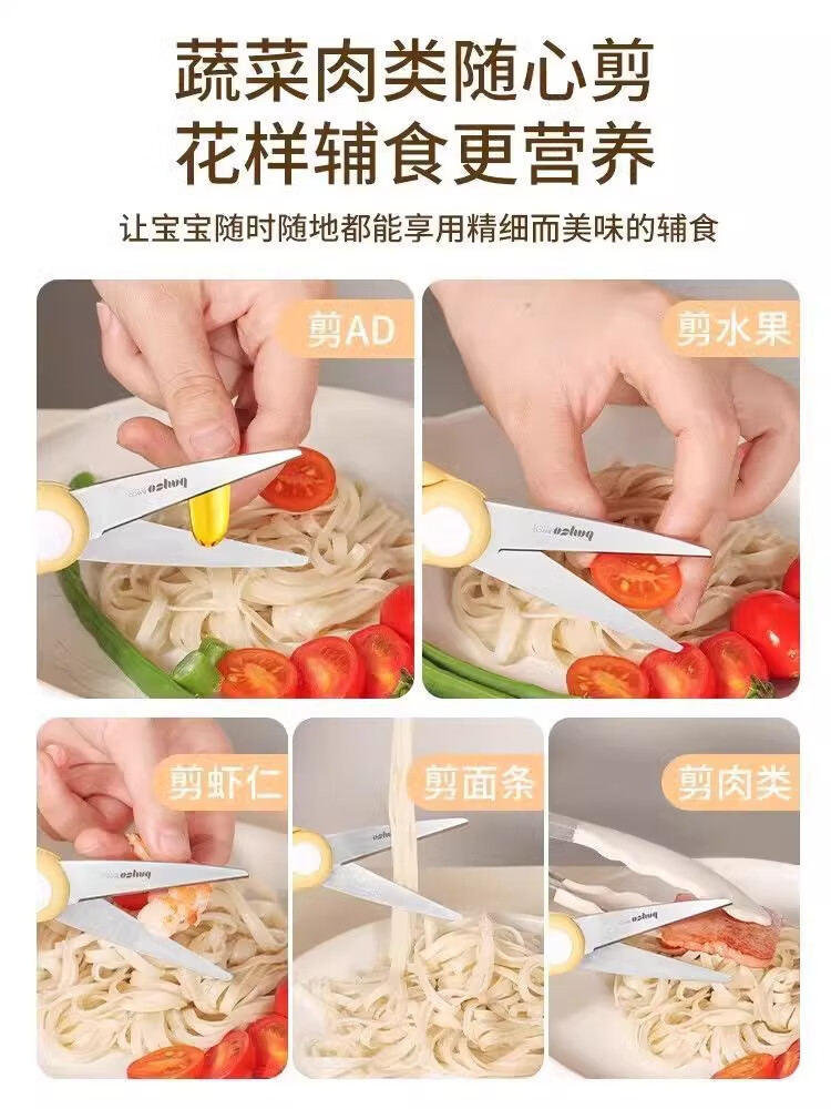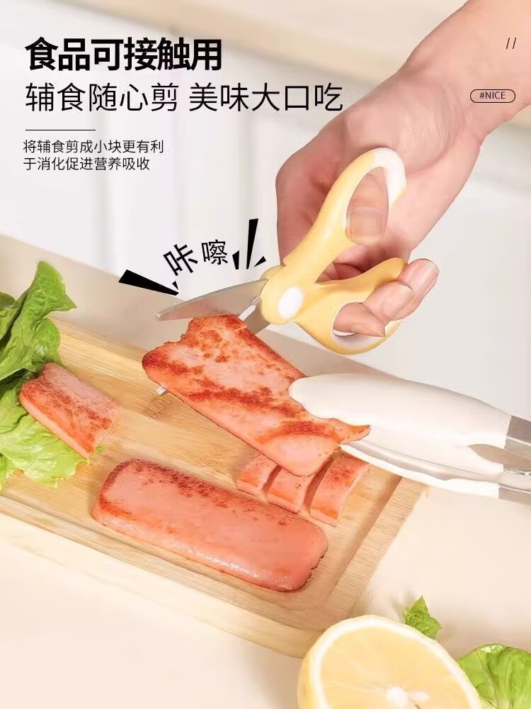 Baig Ciseaux à compléments alimentaires Outil de complément alimentaire pour bébé domestique pour couper la viande et les légumes Outil portable Ciseaux à compléments alimentaires Jaune