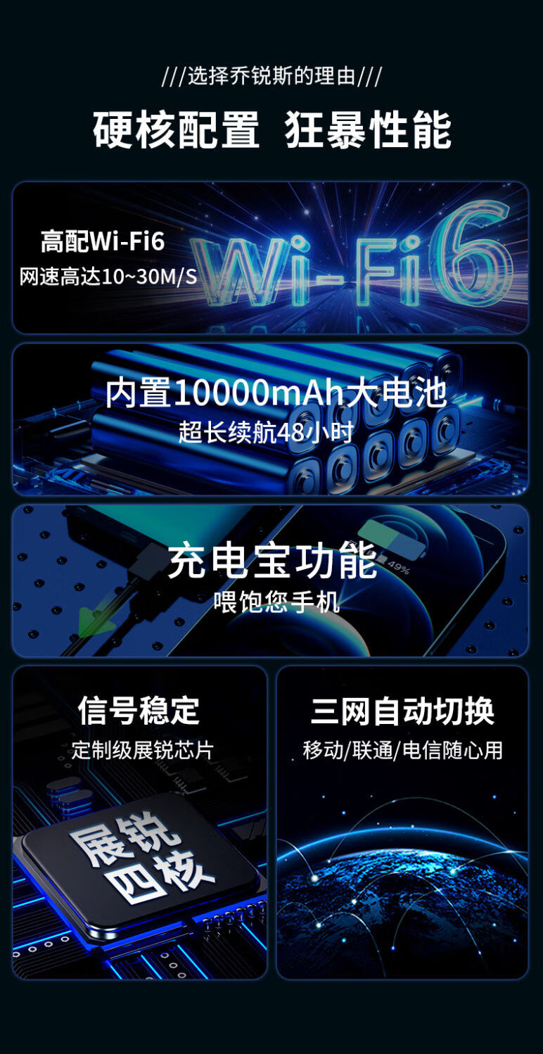 Qiao Ruisi portable wifi comes with 1500G, supports 5G 4G devices, card-free mobile travel, unlimited portable wireless network card, national universal traffic, 2024 model, 4800 mAh, no pre-storage required, top version wifi6+ white