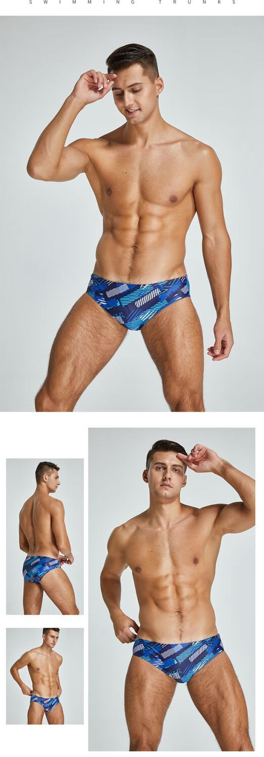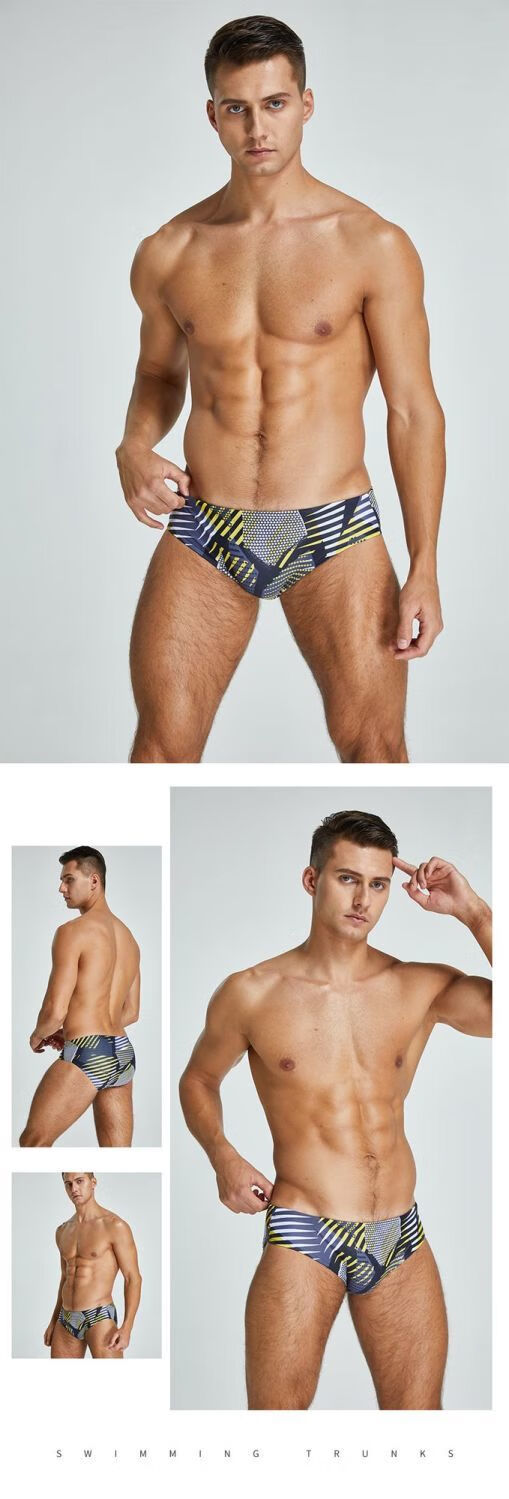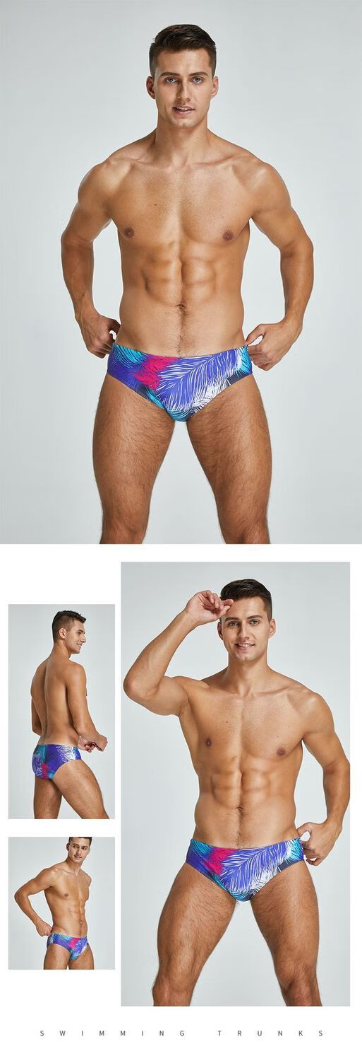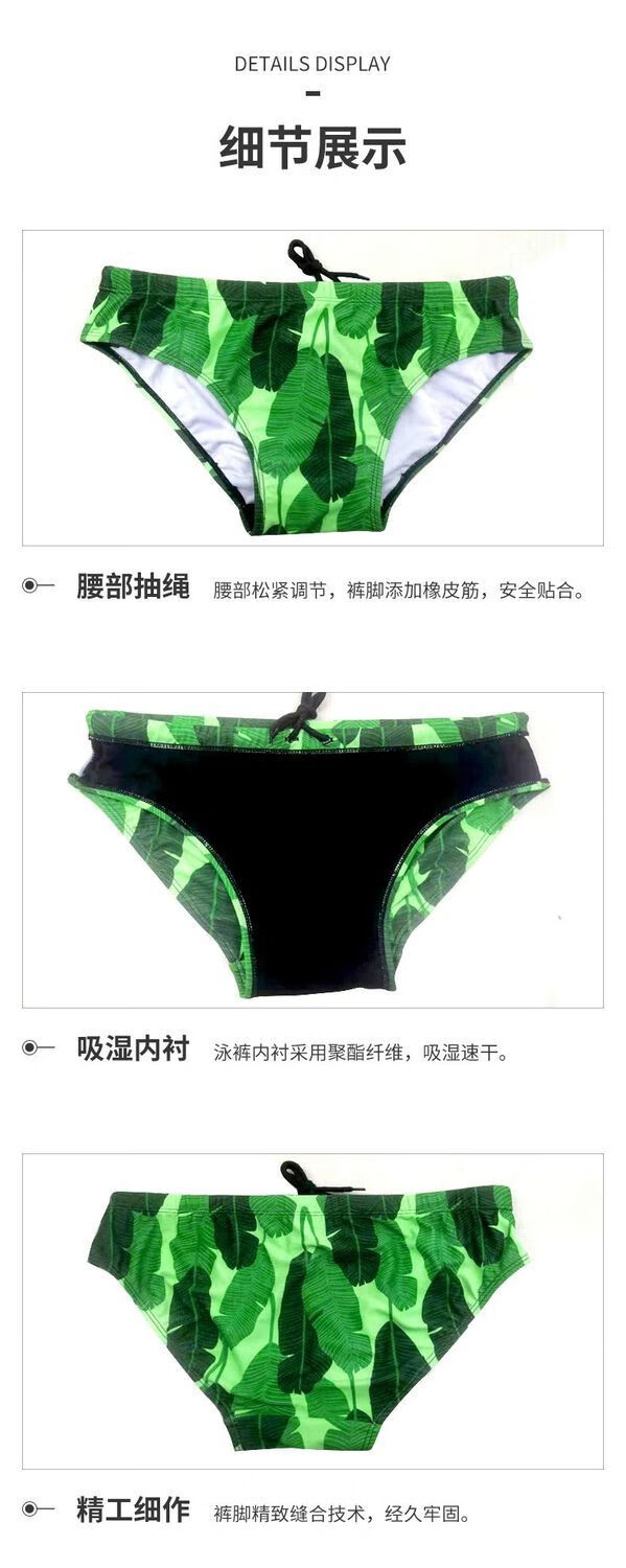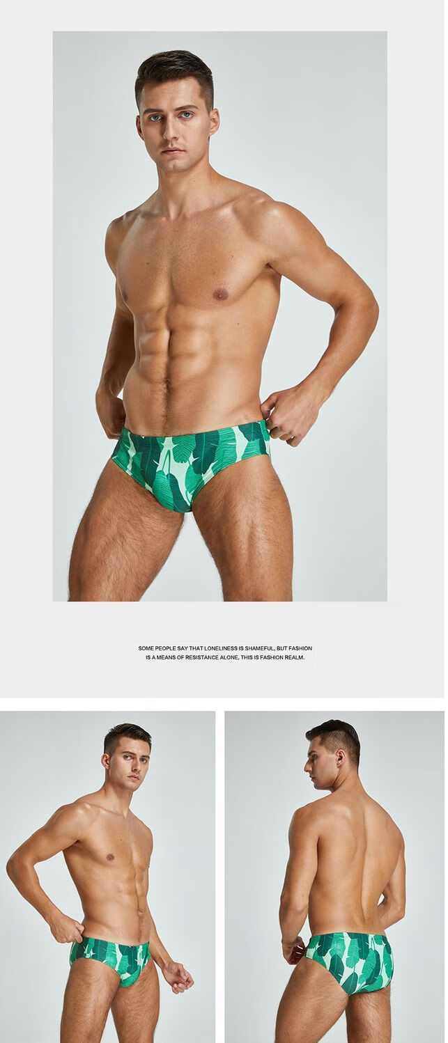 Vinoa Swimsuit 2022 New Briefs Men's Youth Pattern Racing Training Competition Swimming Briefs Green Leaves XL
