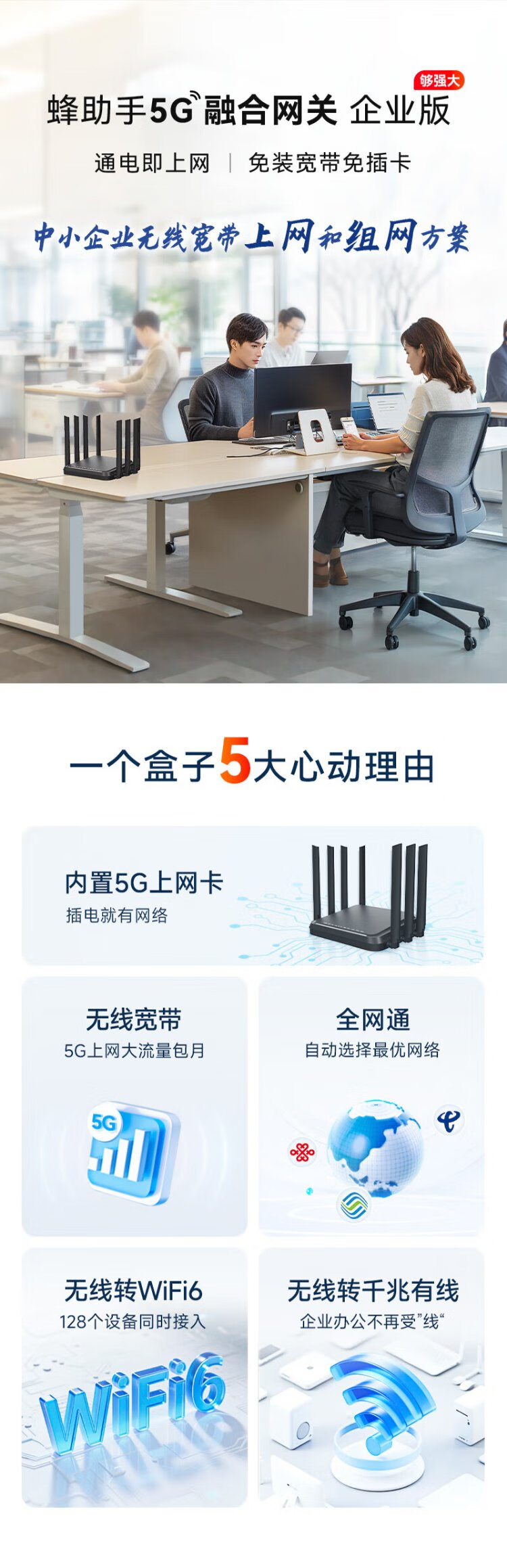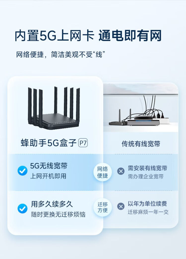 Bee Assistant 5G CPE Router P7 Edición mejorada de alta velocidad de nivel empresarial Banda ancha inalámbrica comercial + WiFi6 (AX3000) Enrutador CPE Red Gigabit Penetración de pared King Black Paquete mensual de tráfico de 12 meses