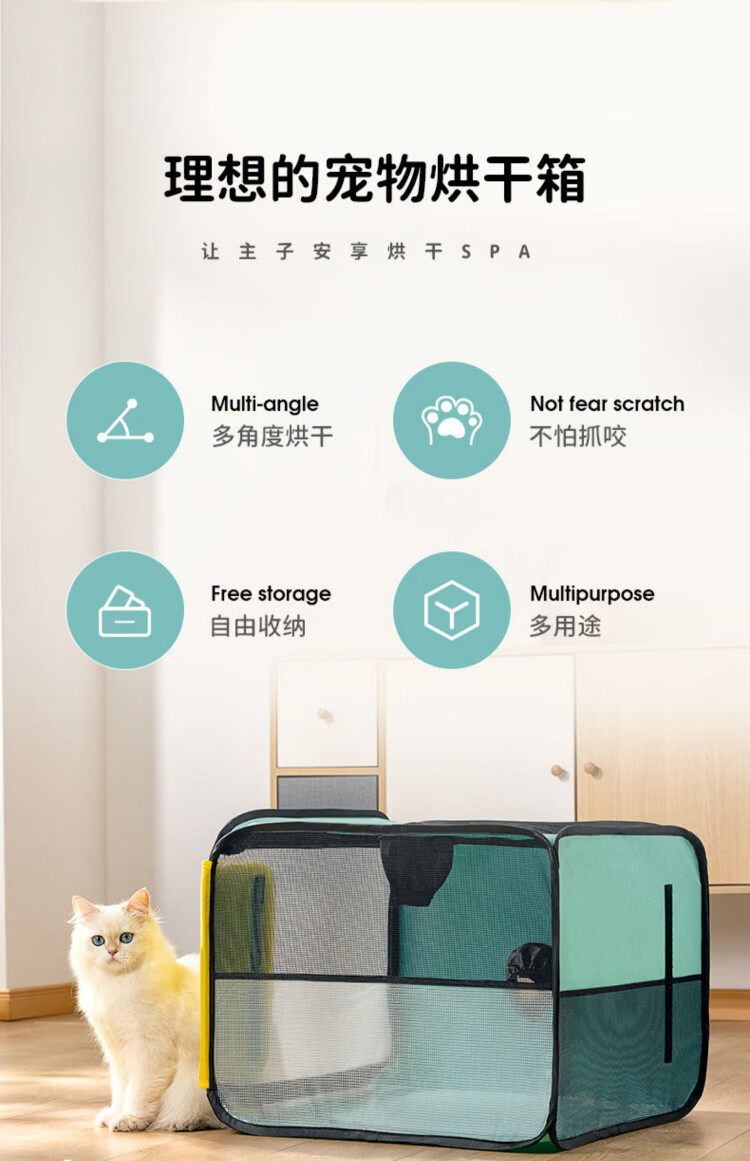 MamyPets Caja de secado para mascotas Bass totalmente automática para el hogar secador de pelo totalmente automático secador de pelo artefacto de baño para perros y gatos rosa azul caja de secado + secadora de graves