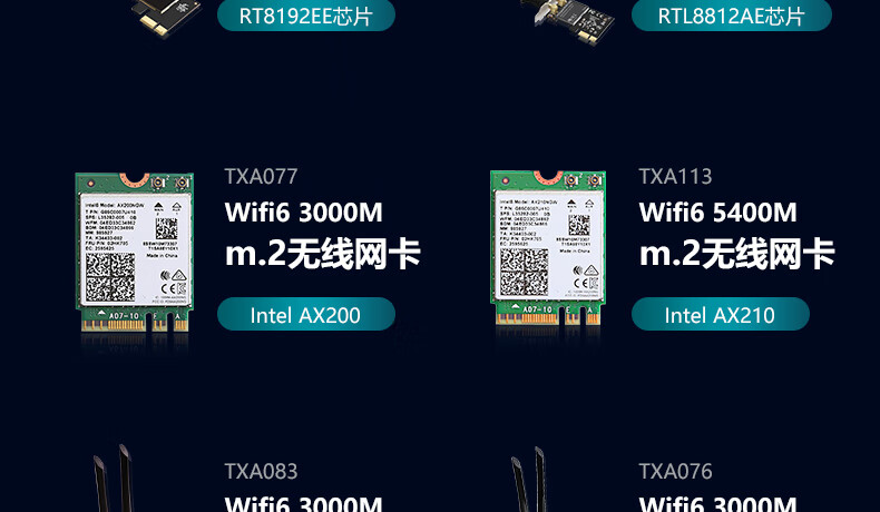 White Spider Intel Intel Realtek AX210 AX200 AX211 Realtek 8192 AC1200 dual-band Gigabit desktop notebook WiFi6WiFi7 wireless network card Intel7620 Intel-1200M-TXA220