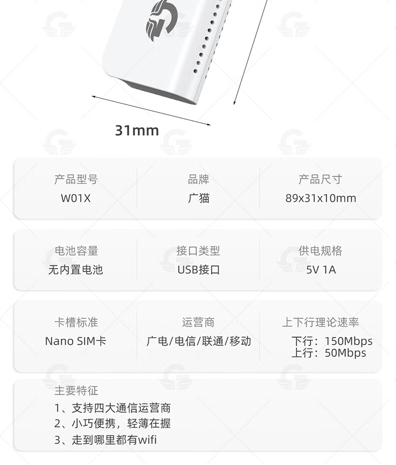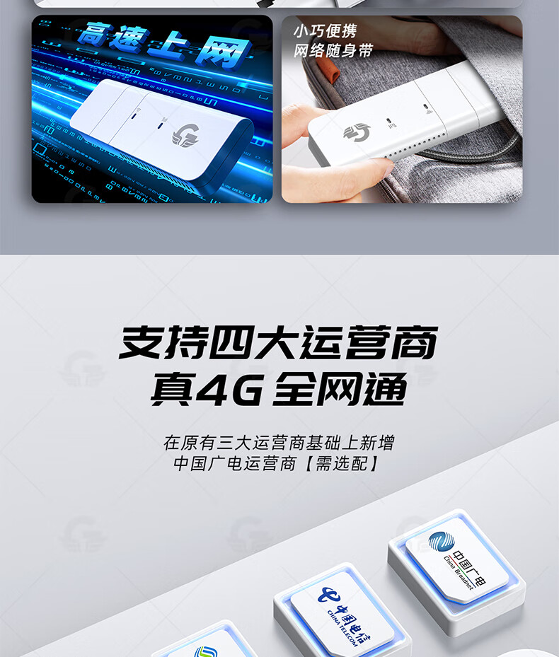 Guangmao W01X self-pluggable card, portable wifi, freely pluggable radio and television mobile China Unicom mobile card traffic Internet card wireless network hotspot 4G router USB dual network pluggable card supports China Unicom/Telecom card