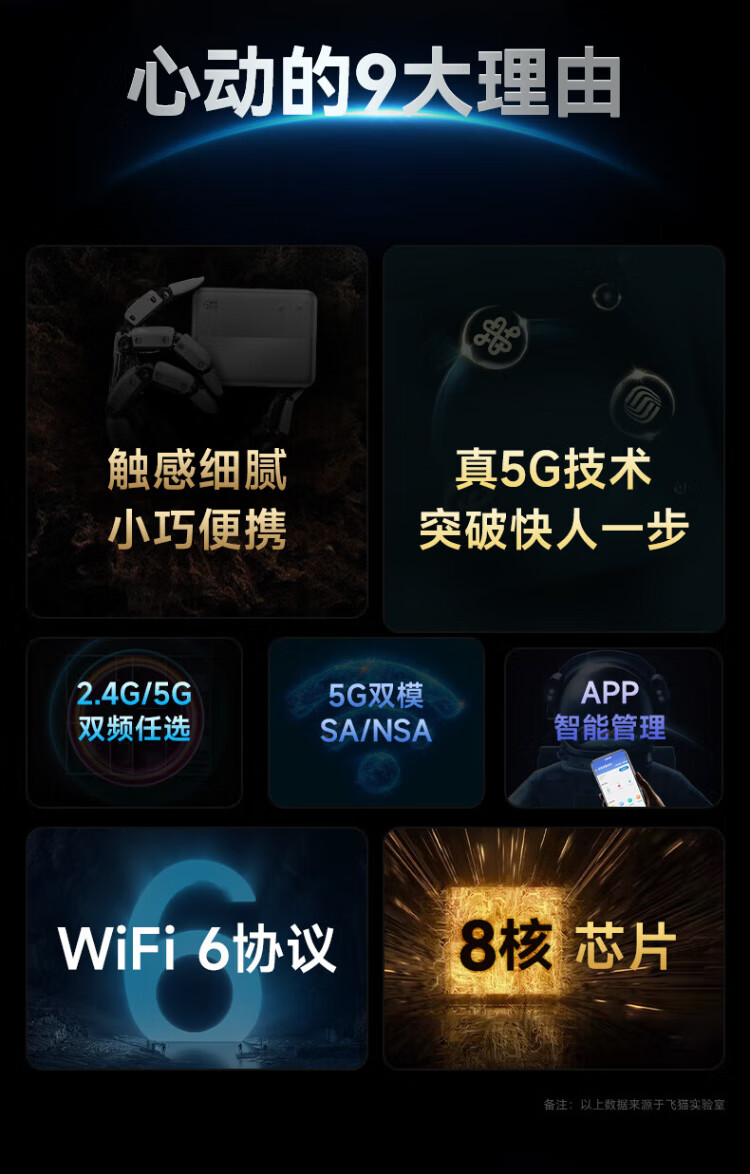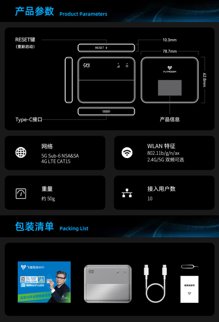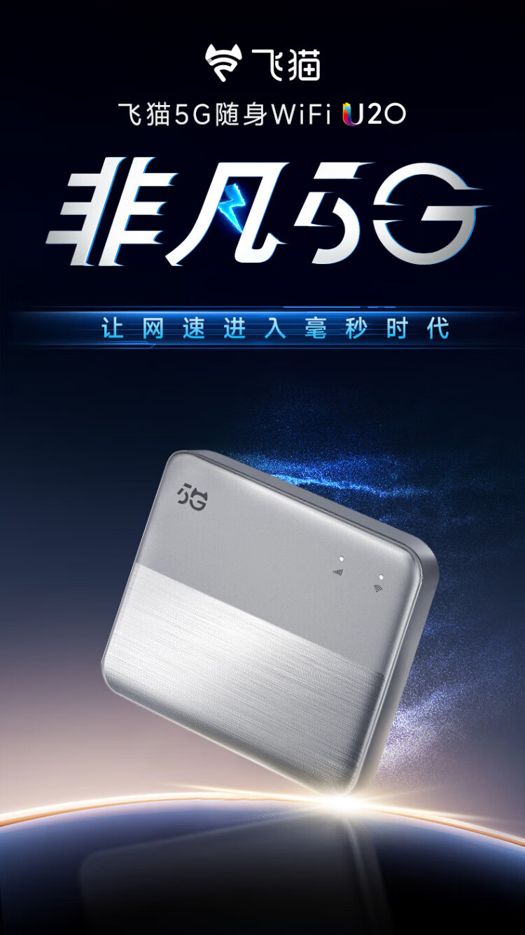 飞猫U20 5G随身wifi免插卡无线移动wifi全网通无线无限上网卡车载wifi流量移动路由器5g2025款 U20免插卡裸机+内置5G双网卡
