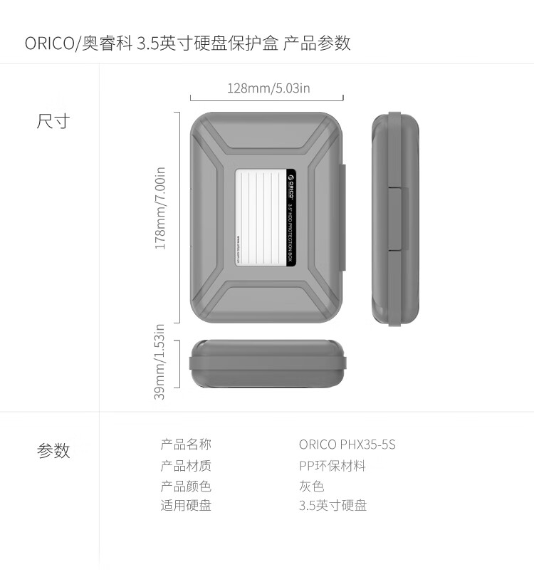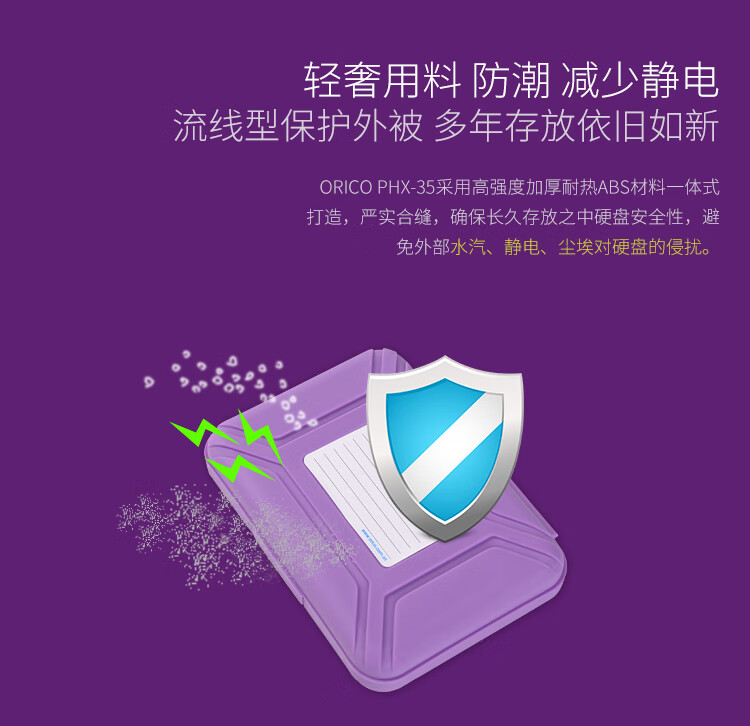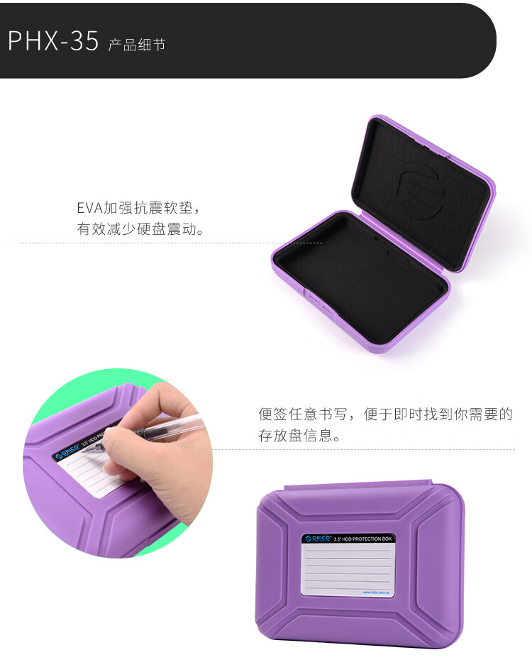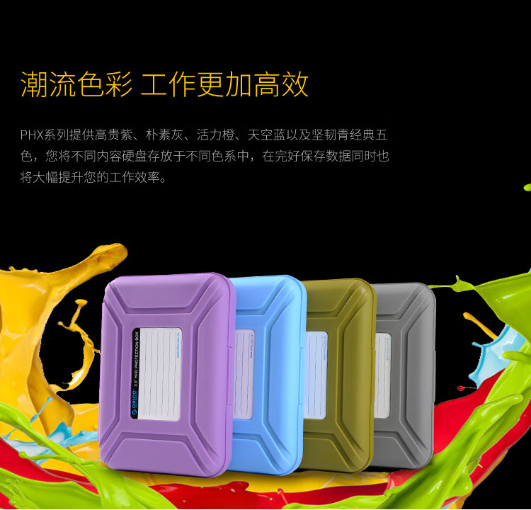 奥睿科(ORICO) 硬盘收纳包3.5英寸硬盘保护盒除静电/防潮/防震彩色硬盘收纳盒单个/彩色组合装 彩色【3.5寸防震 颜色随机】