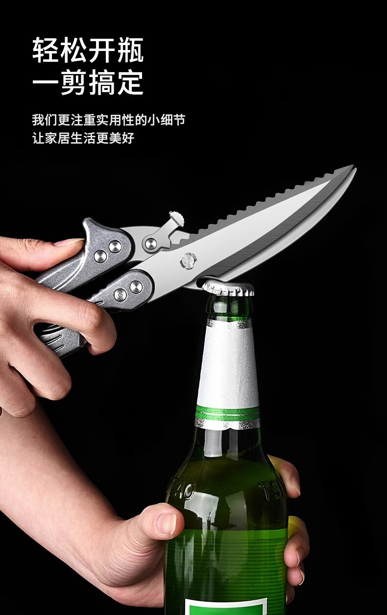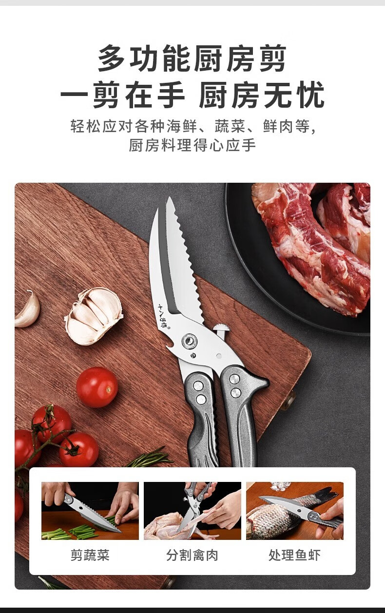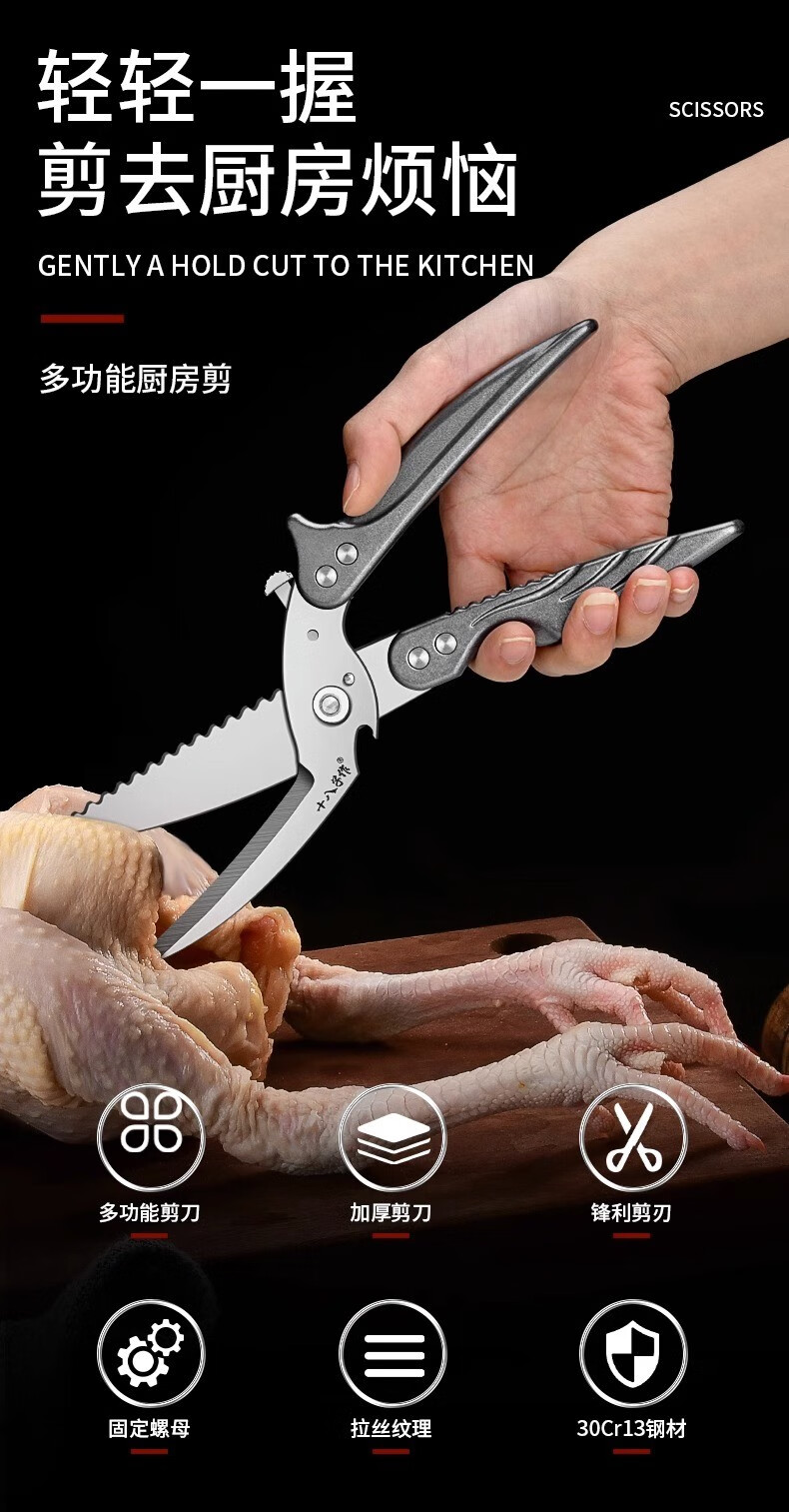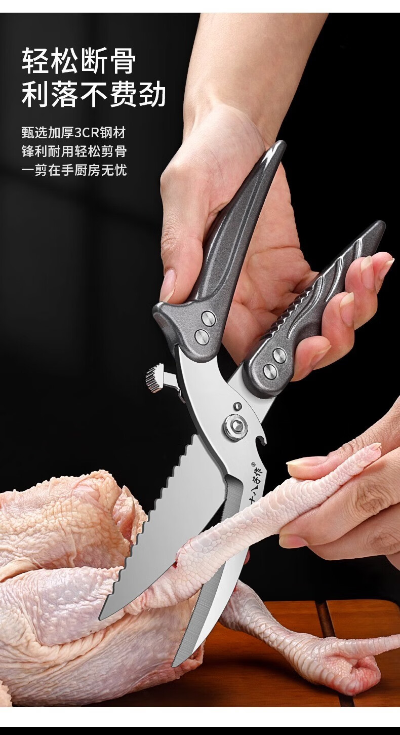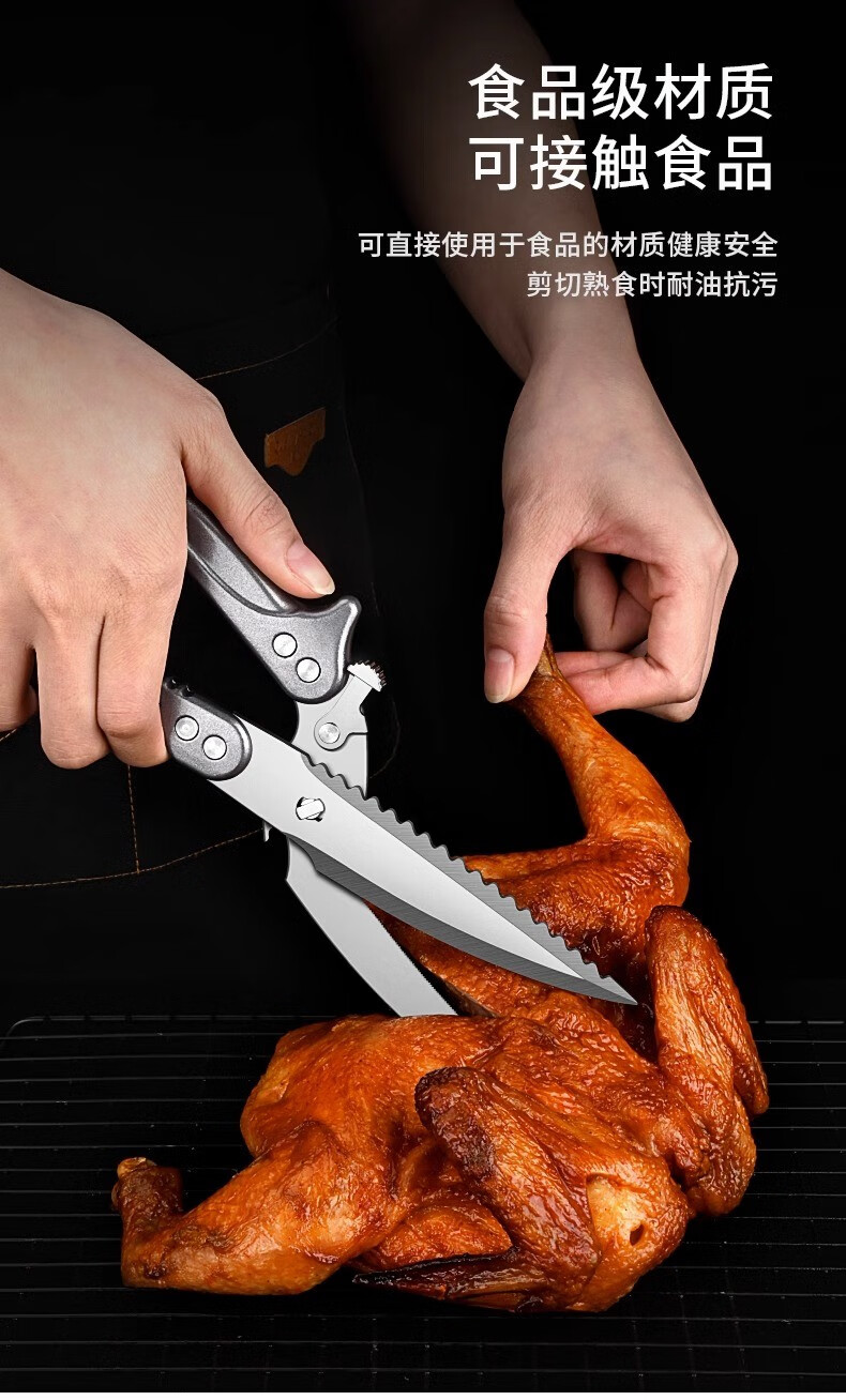 Shibazi makes food-grade stainless steel kitchen scissors, barbecue chicken bone bone cutter, commercial cooked food cutter (2024 new model) multi-functional kitchen scissors-cut two