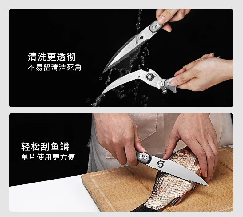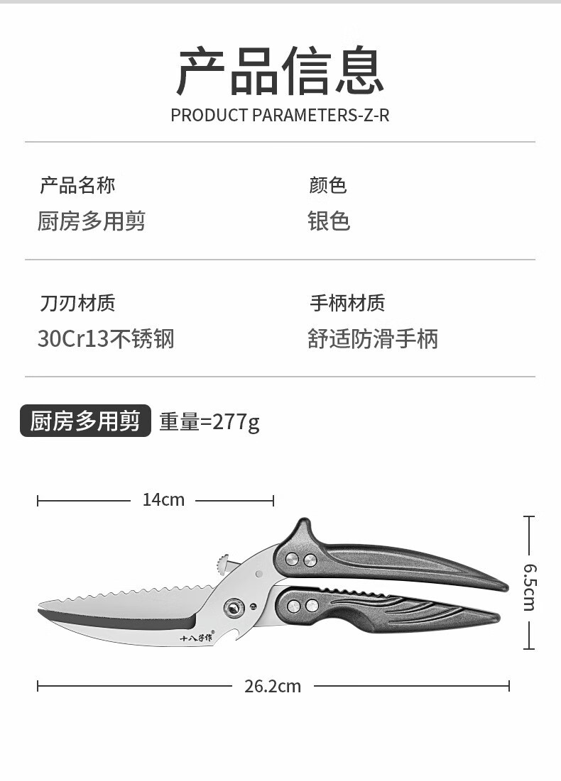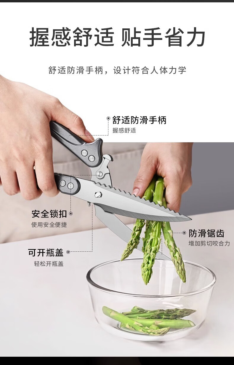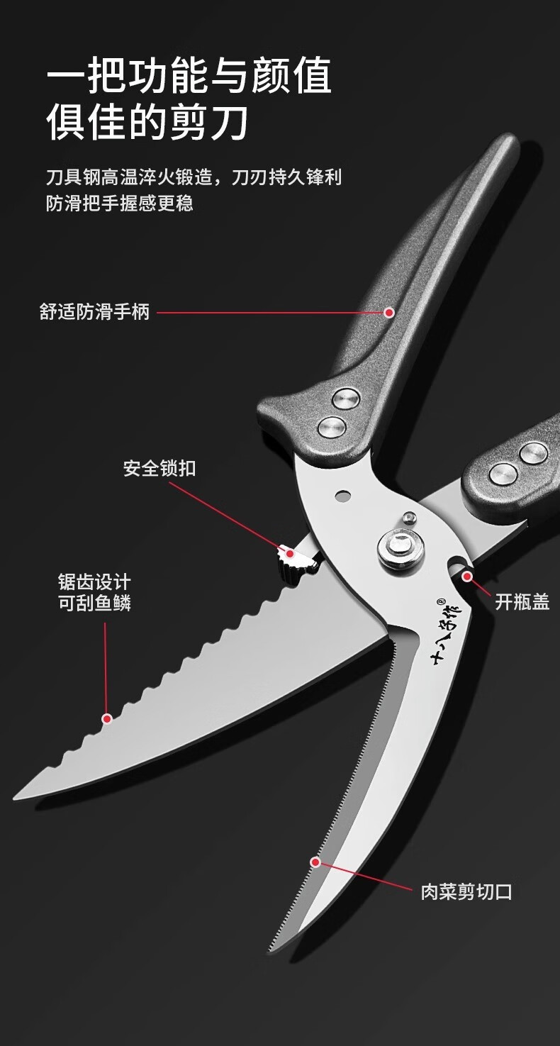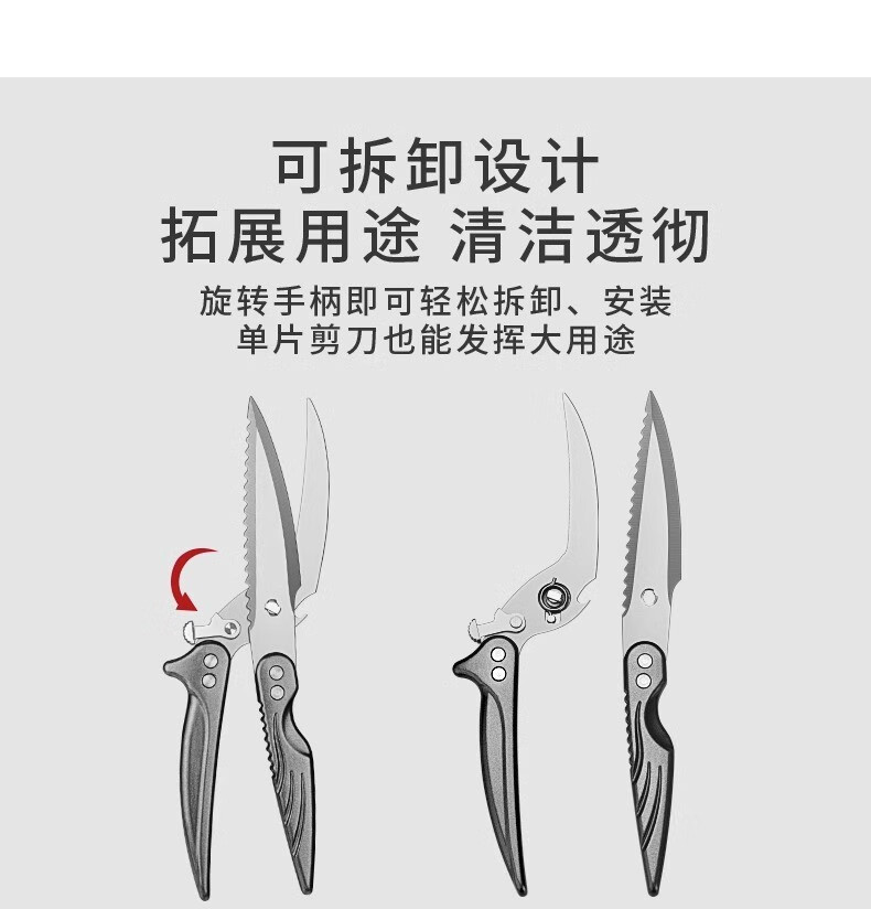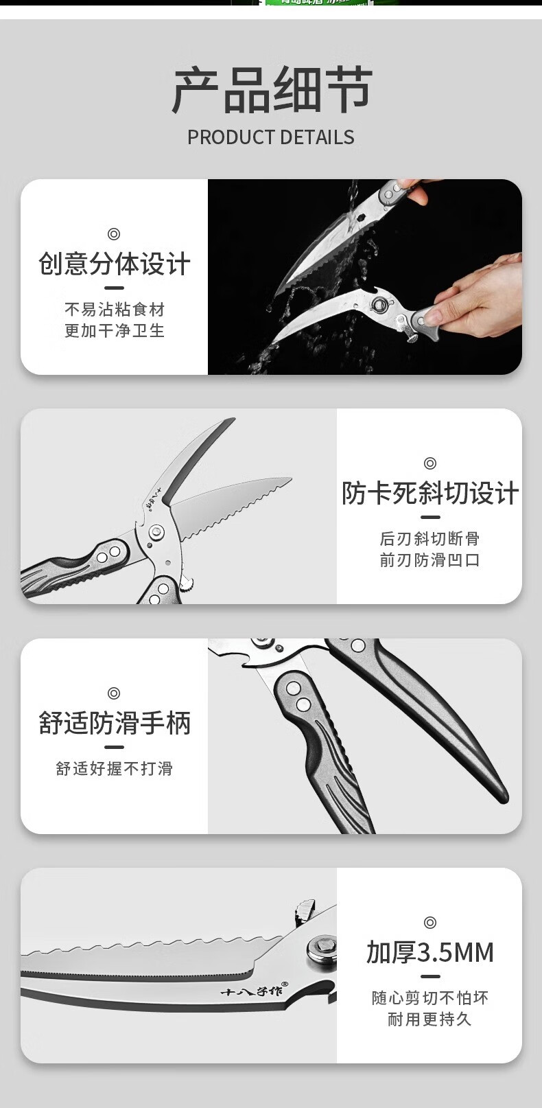 Shibazi makes food-grade stainless steel kitchen scissors, barbecue chicken bone bone cutter, commercial cooked food cutter (2024 new model) multi-functional kitchen scissors-cut two