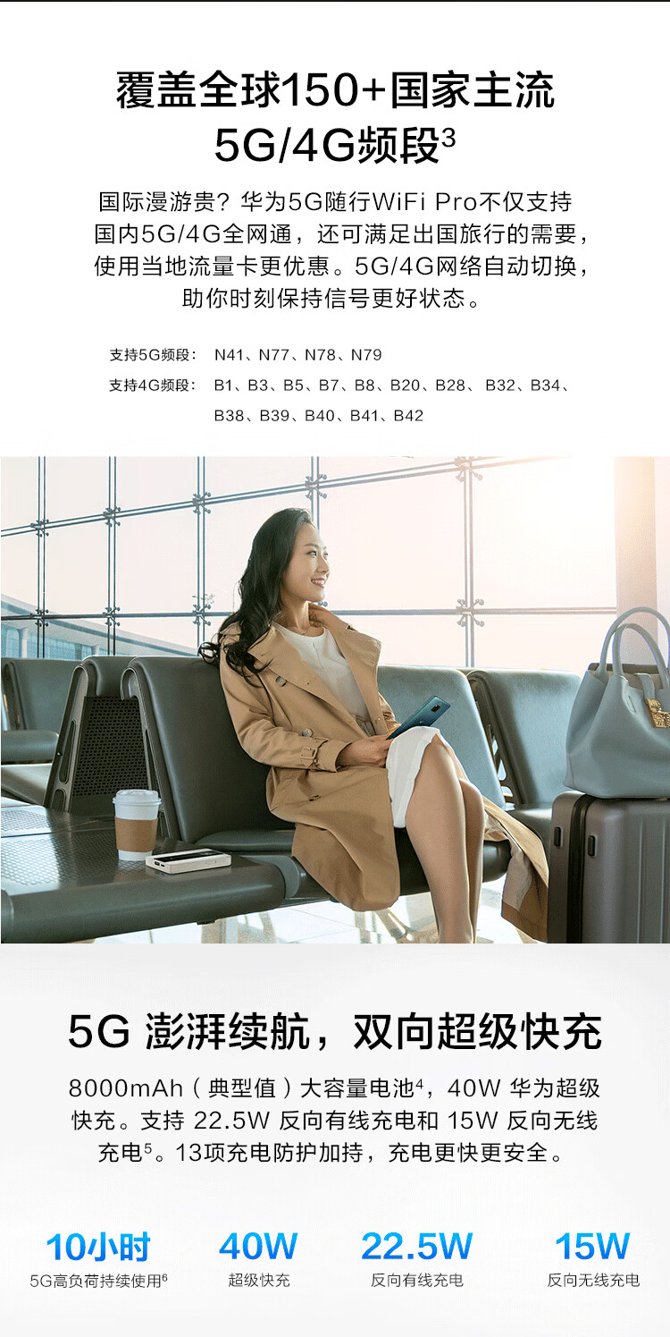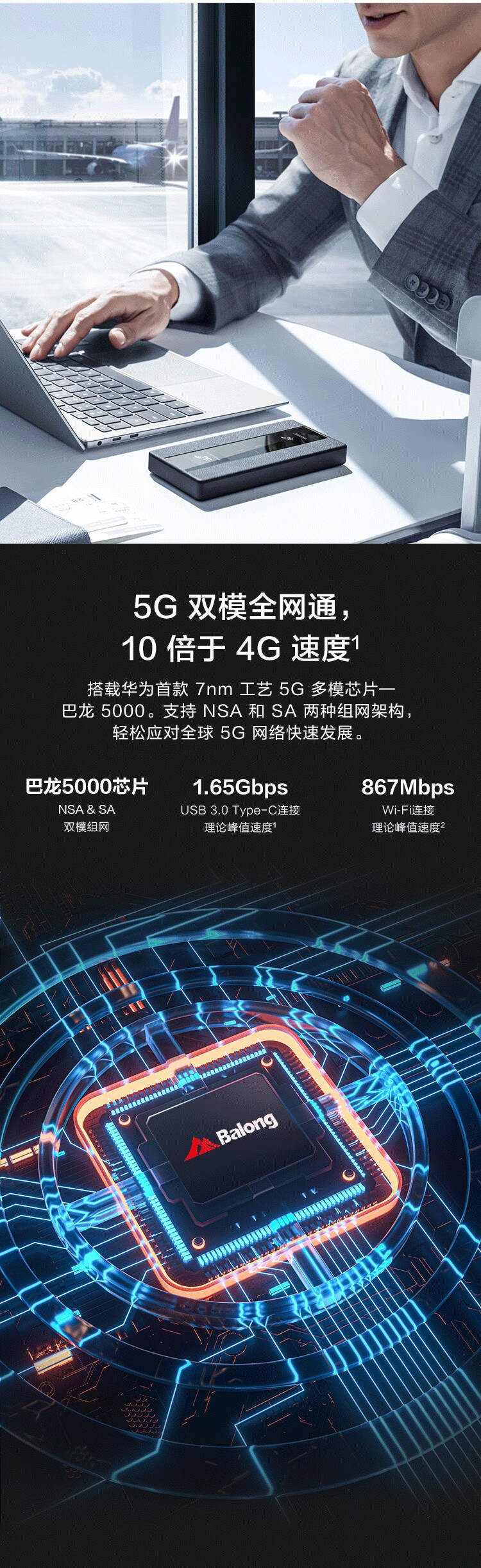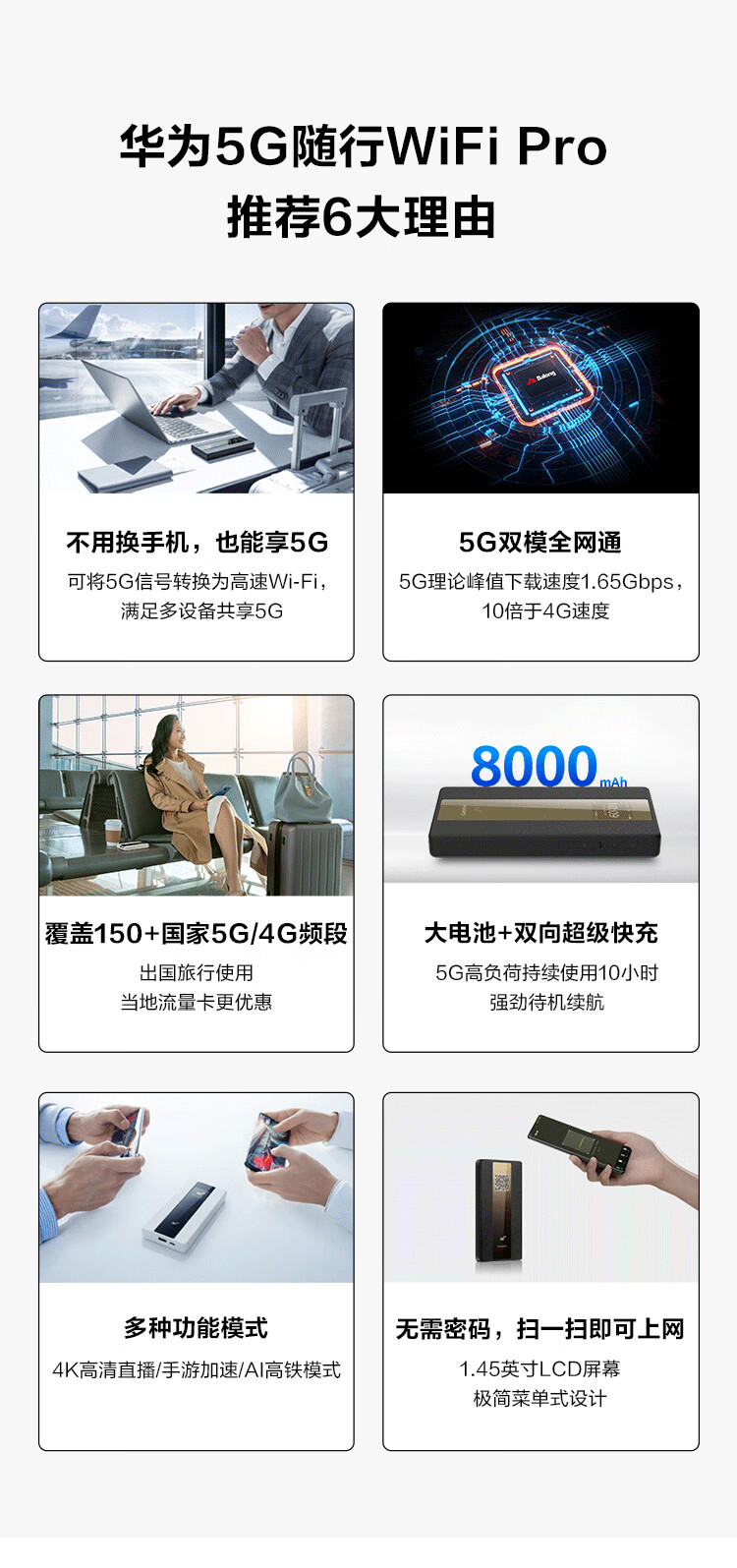 Huawei 5G portable WiFi Pro mobile wifi portable wifi wireless router plug-in card for Internet access E6878-870 AX15B E6878-370 high-end version 8000 mAh battery annual package-enjoy version monthly 500G