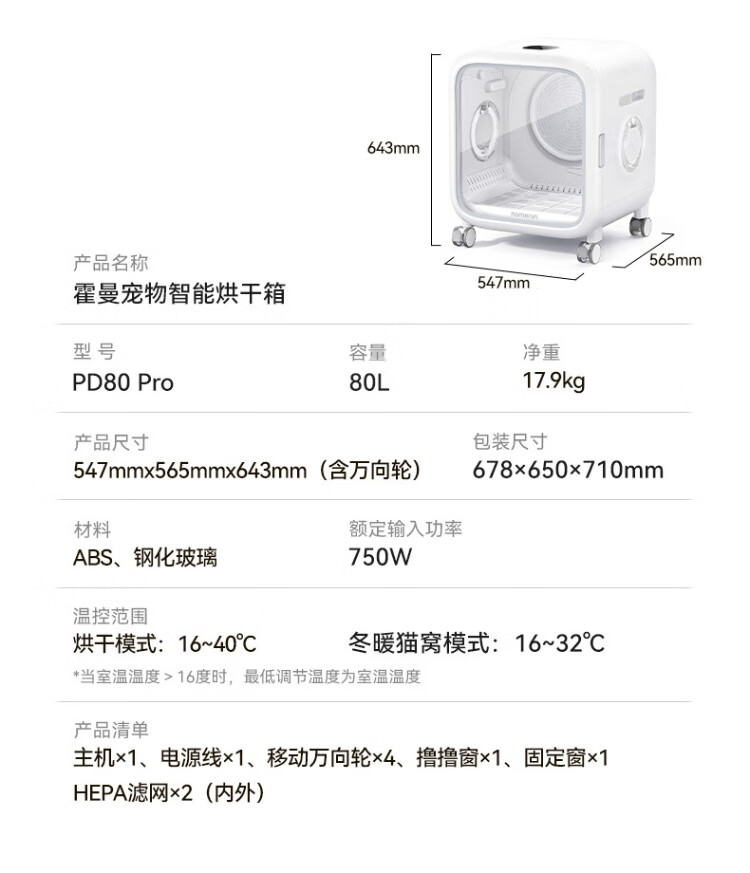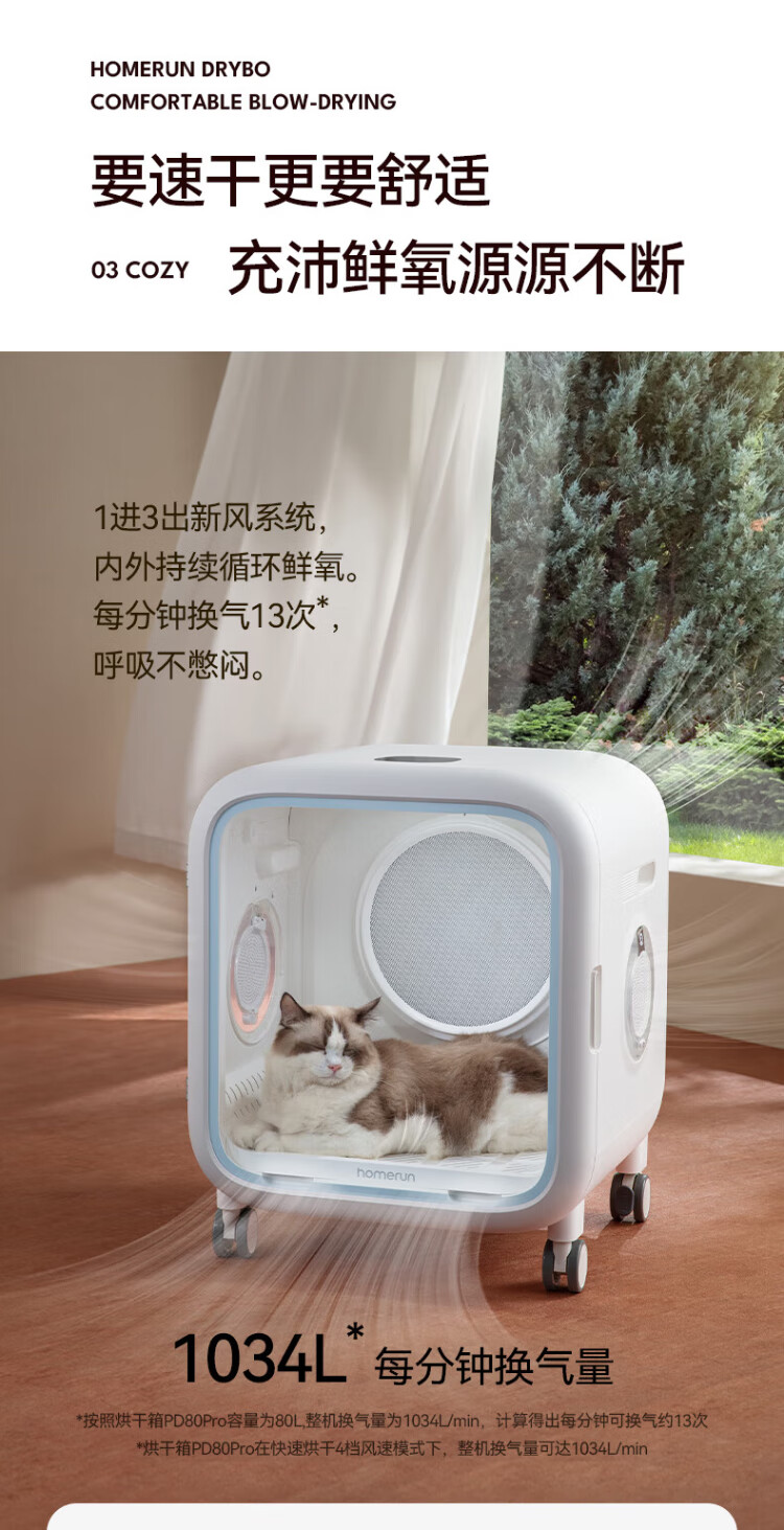 Caja de secado inteligente para mascotas Homerun, secador de pelo para gatos, secador de pelo para mascotas, secador de pelo para perros, caja de secado inteligente para mascotas PD80 Pro