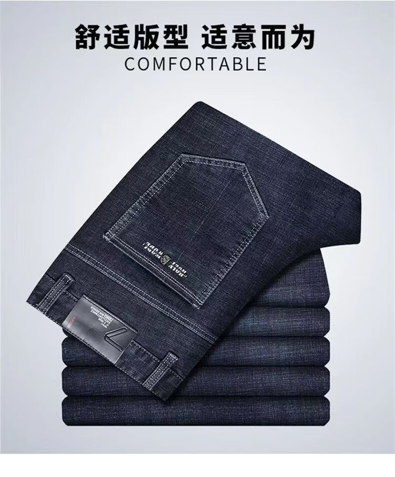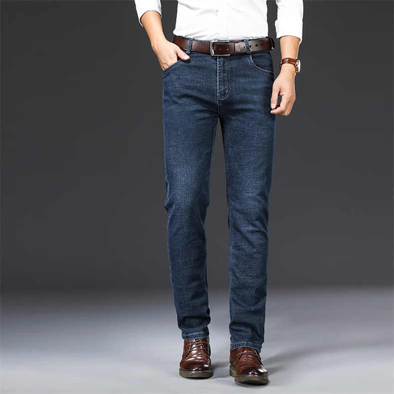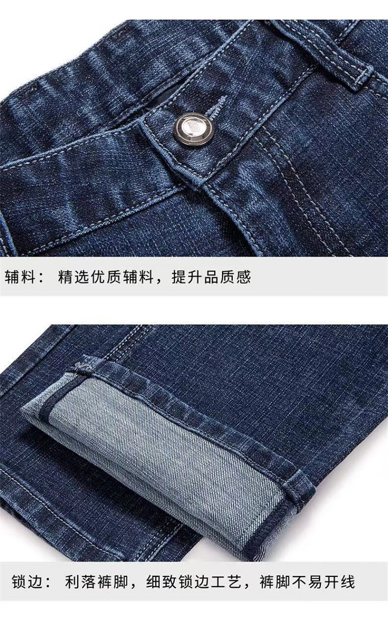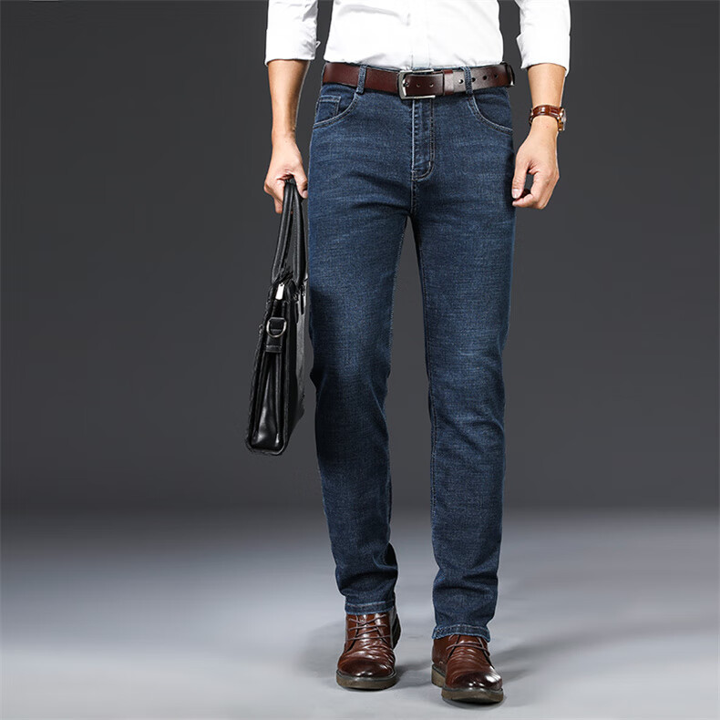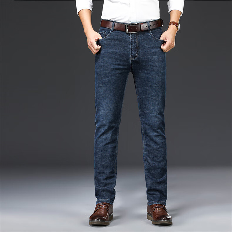Woodpecker Jeans Men's Spring and Autumn Thick Stretch Middle-aged Men's Pants Business Loose Casual High Waist Straight Pants Long Pants A07B Blue 32