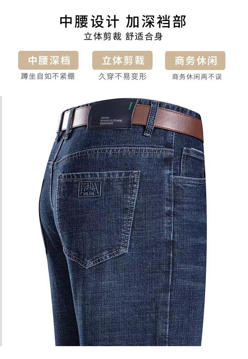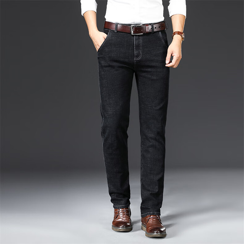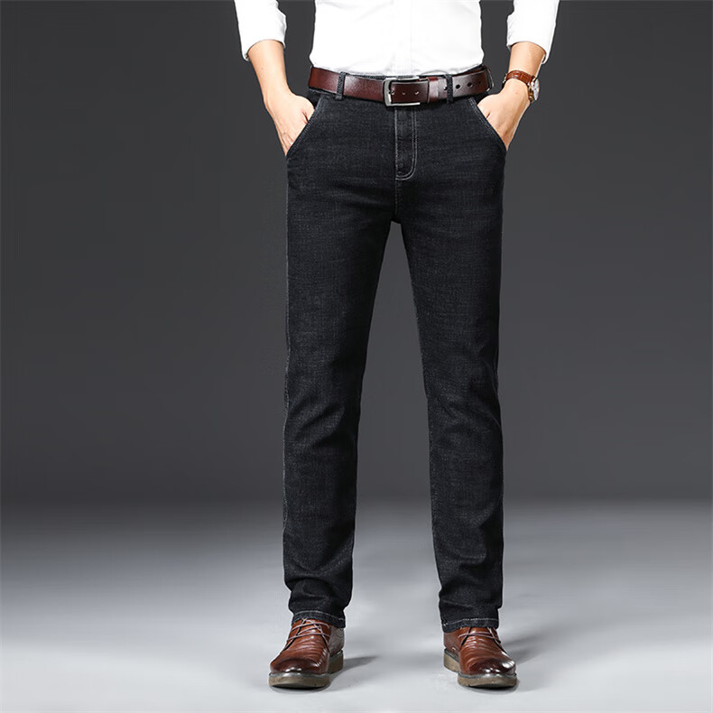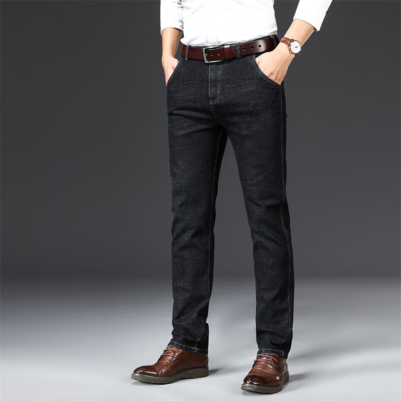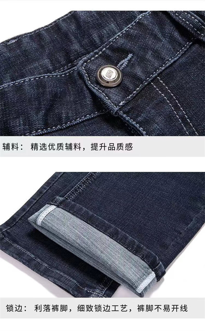 Woodpecker Jeans Men's Spring and Autumn Thick Stretch Middle-aged Men's Pants Business Loose Casual High Waist Straight Pants Long Pants A07B Blue 32