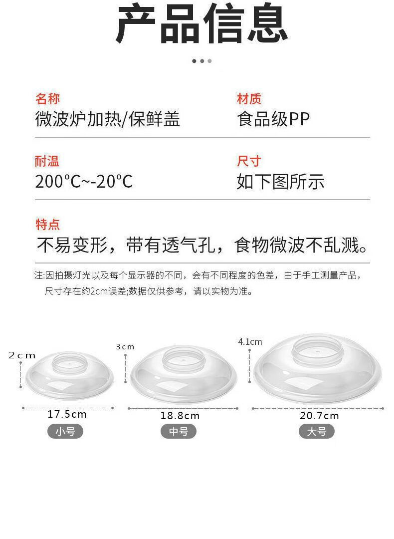 食品级微波炉专用防溅盖保温盖加热盖子防尘碗盖保鲜盖盖菜罩家用 透明 1层 中【19.0cm】1个