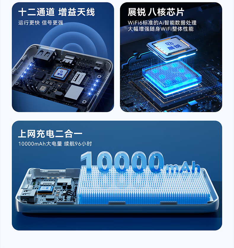 Cool Wing wifi portátil de tres redes universal sin enchufe montado en camión 4G portátil sin restricciones Internet tesoro móvil Unicom Telecom de alta velocidad con tráfico universal nacional Modelo 2025 Carga 5GXY + acceso a Internet Batería grande de 10000 mAh + orden de conmutación de tres redes (tráfico gratuito de 1500G) transmisión en vivo entretenimiento de juegos dramáticos