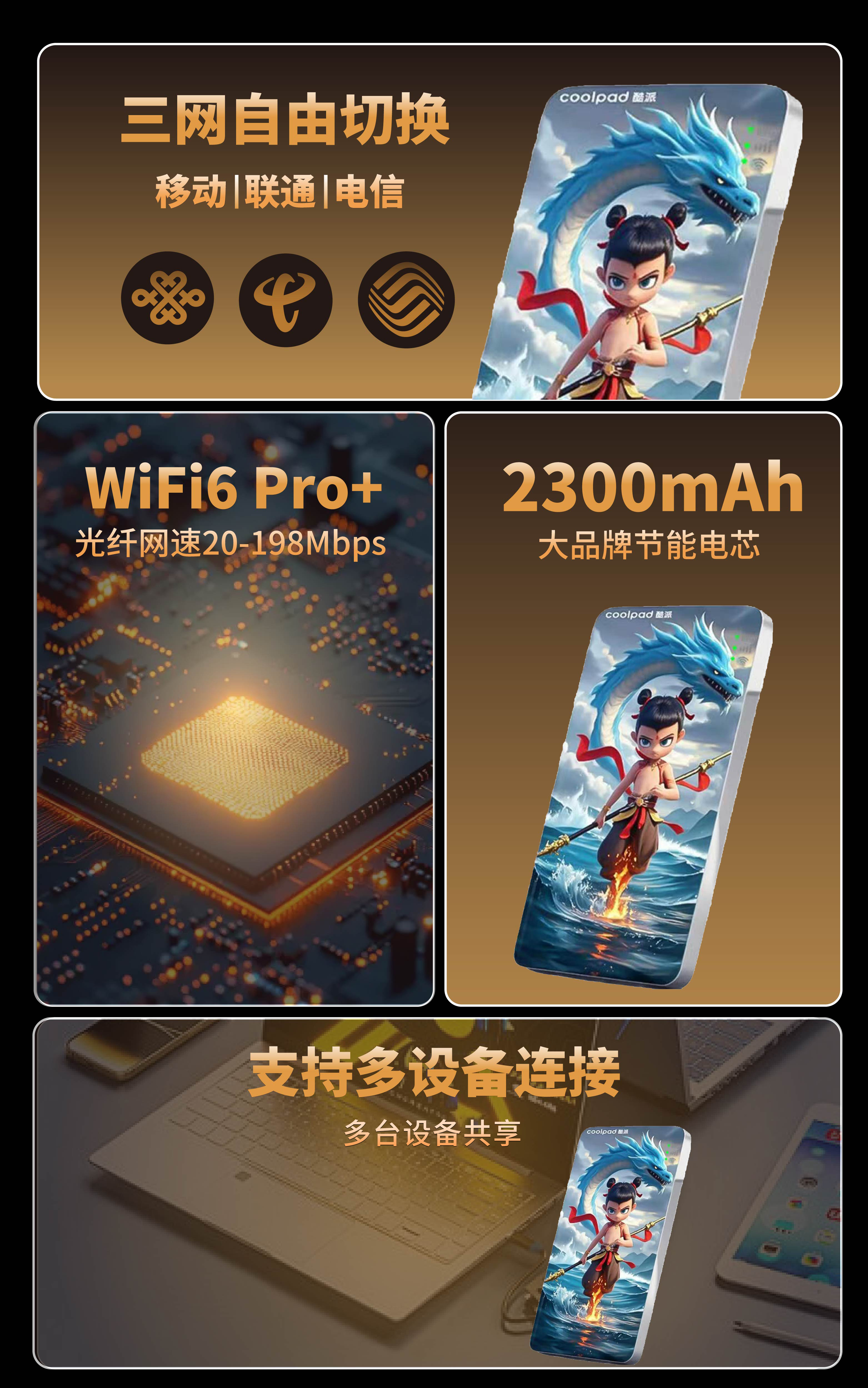 Coolpad portátil wifi móvil inalámbrico wifi6 tarjeta de red inalámbrica tres redes red inalámbrica portátil de alta velocidad sin tarjeta tráfico nacional 2025 wifi portátil último WiFi6Pro inteligente AI aumento de velocidad + 20 ganancia de antena