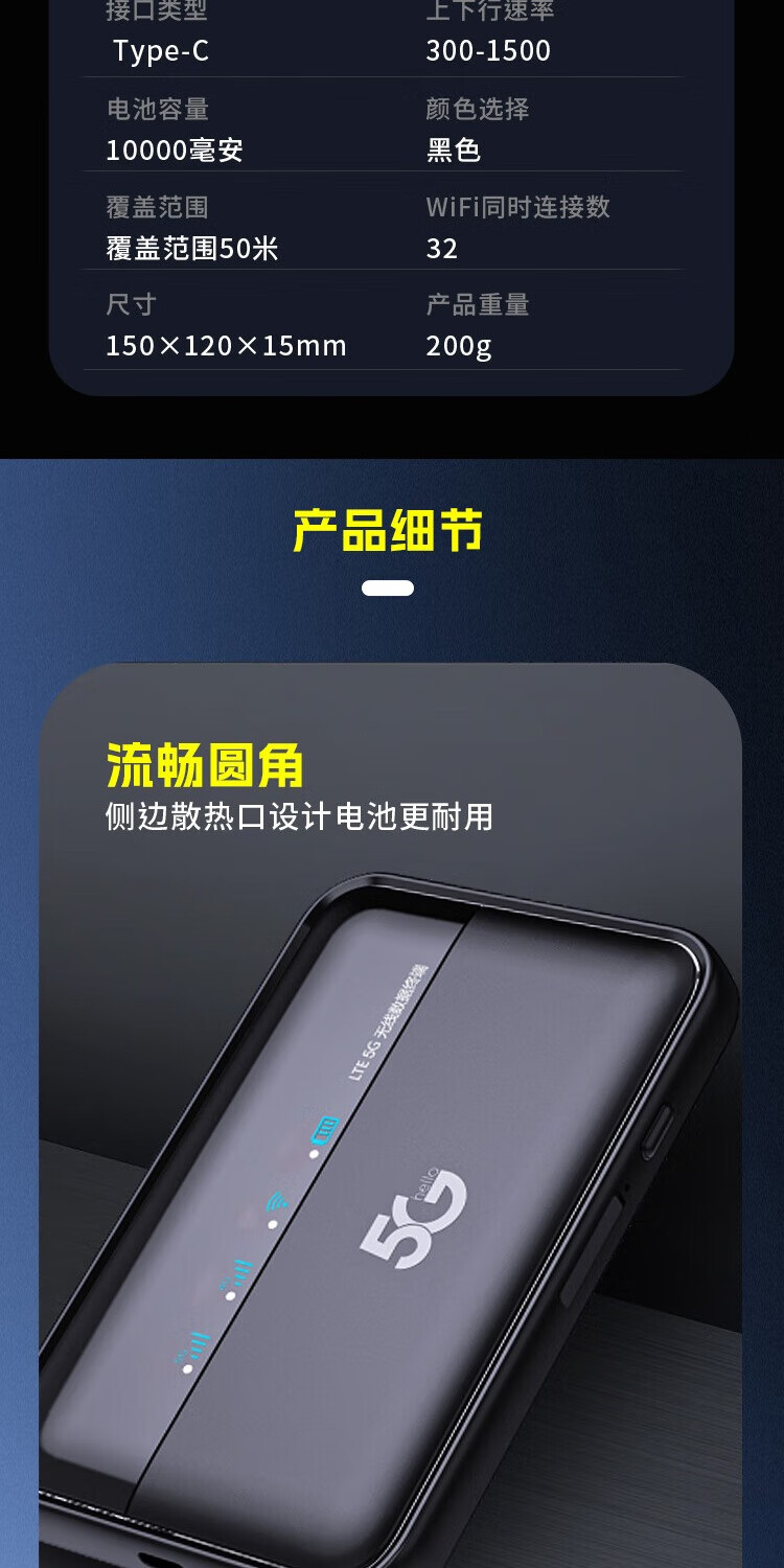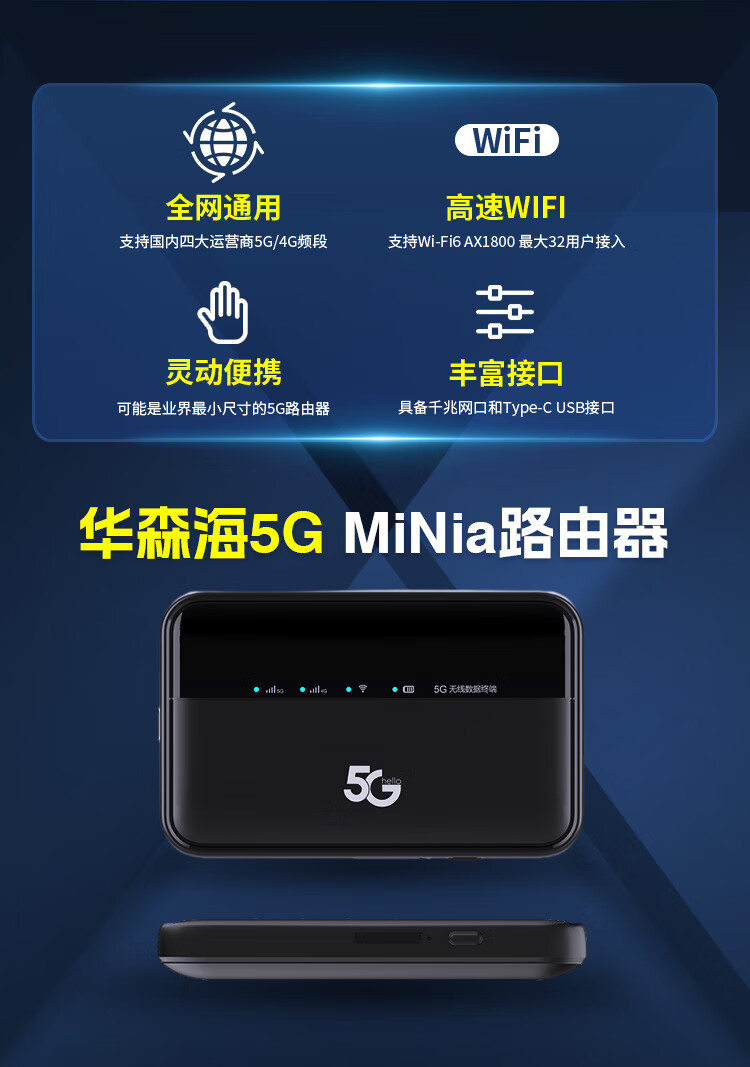 Huasenhai Huasenhai's new mobile portable wireless wifi 6 Gigabit fiber optic network router 5G broadband signal strengthens the whole network through the wall without plug-in card portable traffic Internet Magic Night Black <5G-Mobile Version> Extreme Speed ​​Version 1500G/month