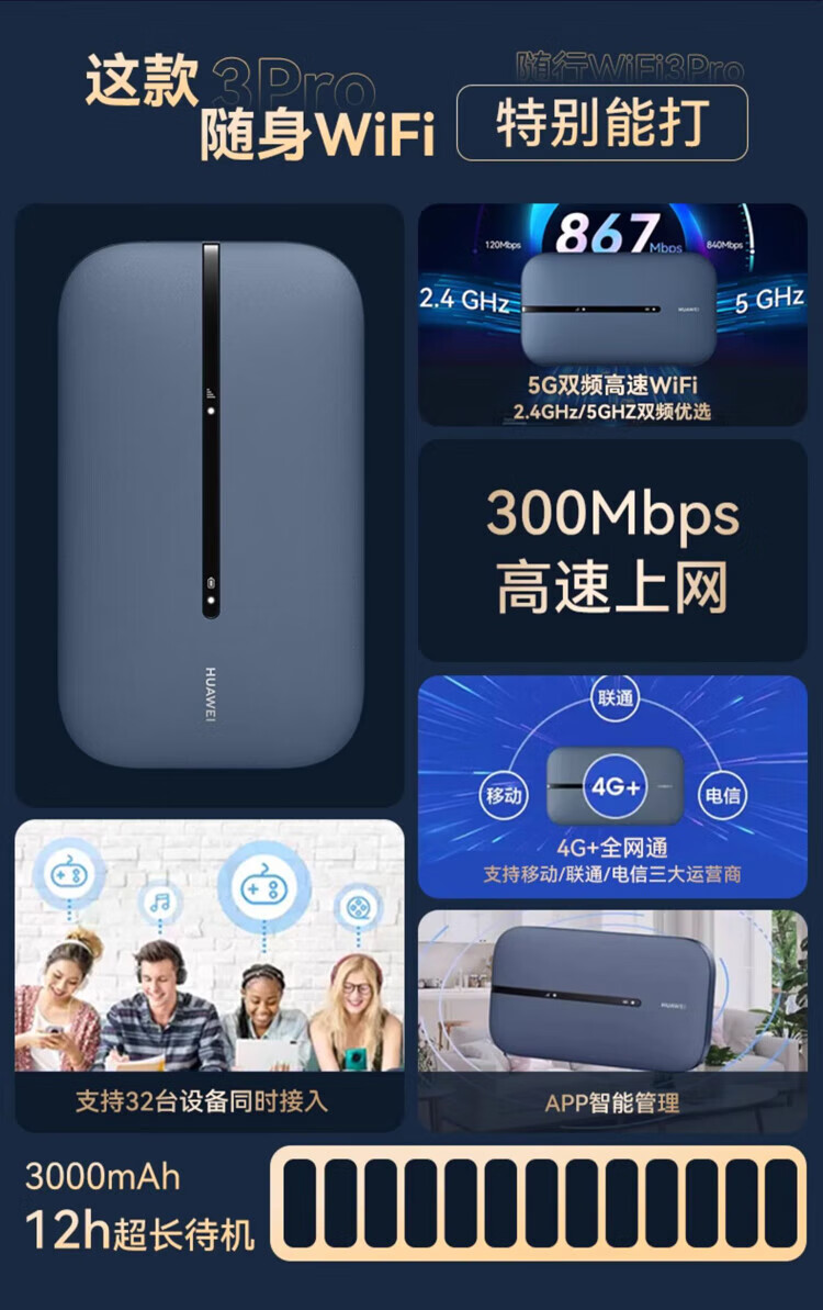 Huawei e5783 accompanying wifi3 pro mobile portable wireless network card 4g router plug-in truck-mounted mifi treasure e5783-836 Place an order and receive 1500G national traffic. Post the order and receive a 20 yuan red envelope + 30-day free trial + one-year replacement without repair