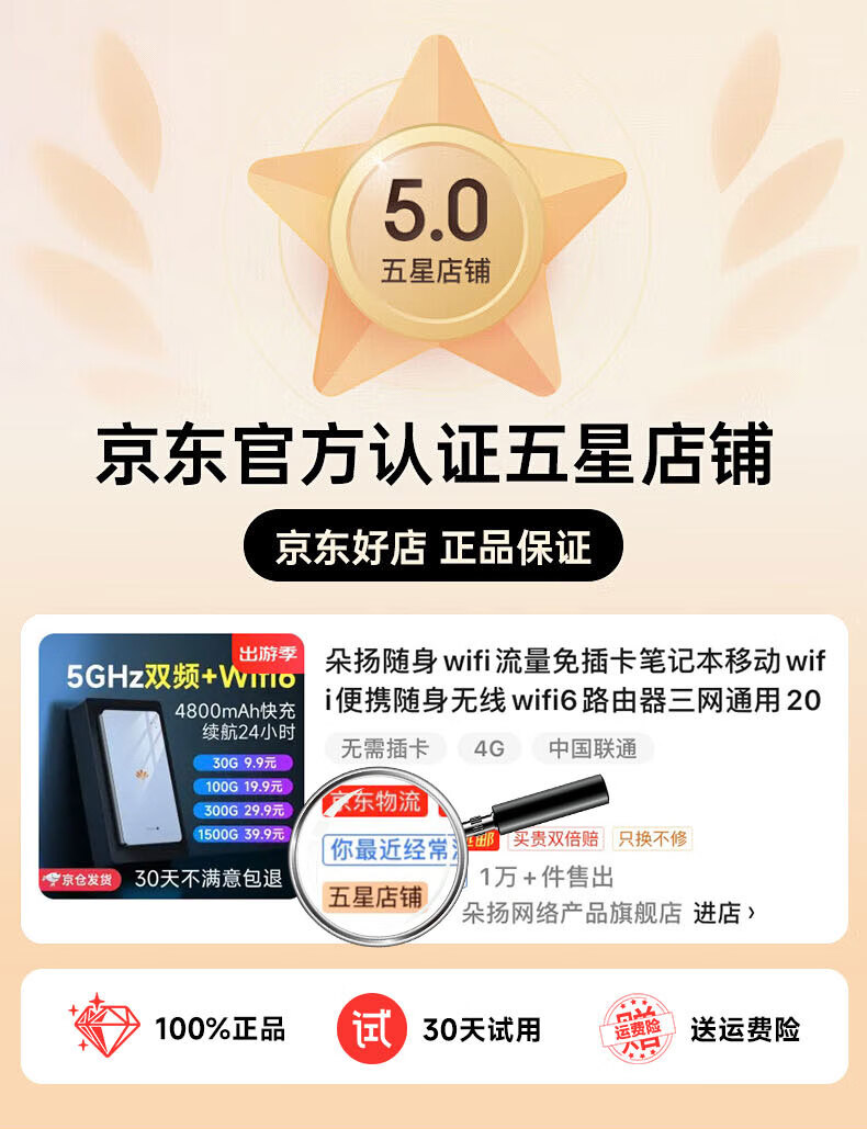 朵扬随身wifi2025新款无线wifi便携式移动wifi随身4g路由器无限流量5ghz免插卡移动电信双网通无线网卡 【5000毫安升级款】2025顶配5Ghz