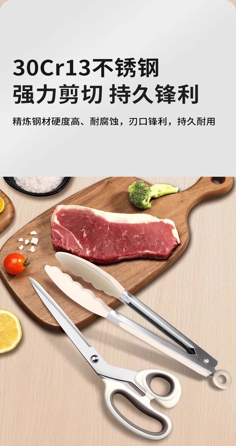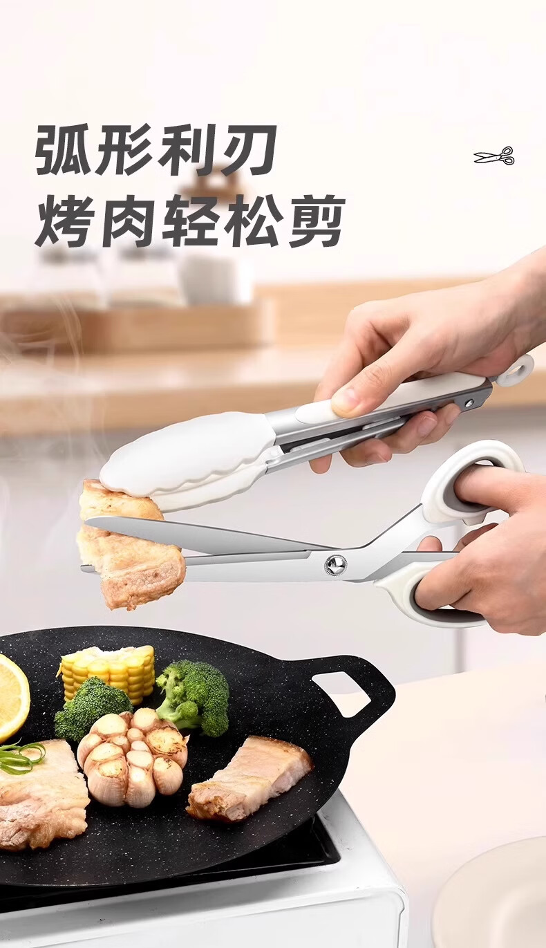 OPPEIN Barbacoa Tijeras para Barbacoa Clips Juego Comercial Cocina al Aire Libre Hogar Especial Multifunción Carne Alimentos Delicatessen Tijeras Versión Mejorada - Tijeras para Barbacoa Blancas Nórdicas + Clips para Alimentos