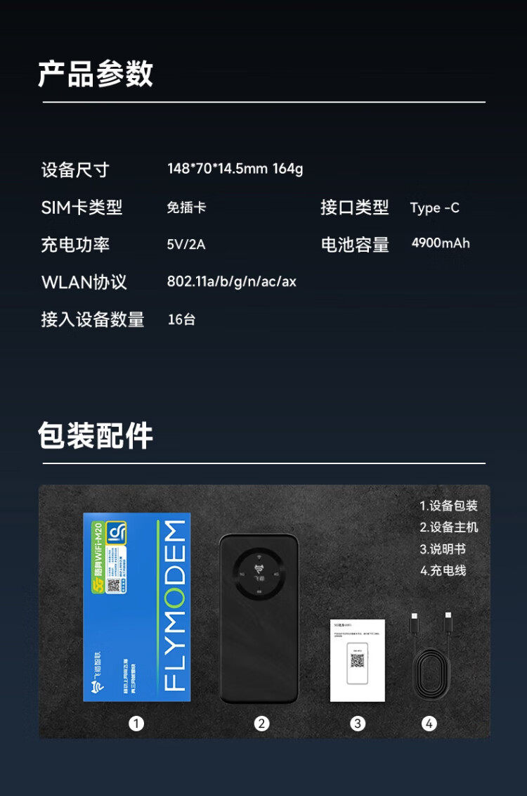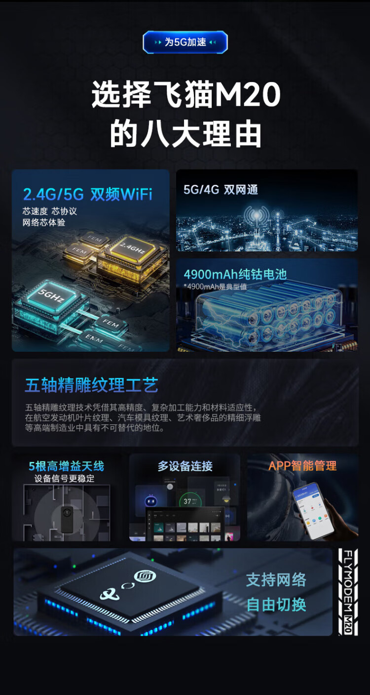 飞猫【免费换新】飞猫M20 5G随身wifi无线移动wifi免插卡全网通无线网卡车载随行无线笔记本电脑上网宝 M20免插卡+内置5G双网分身卡