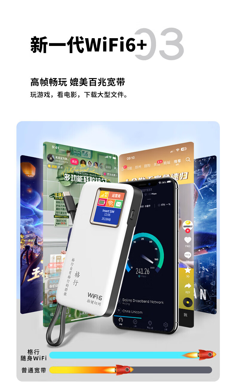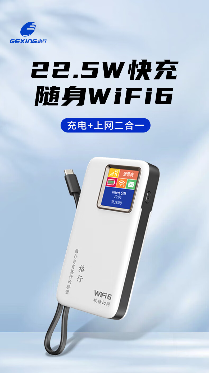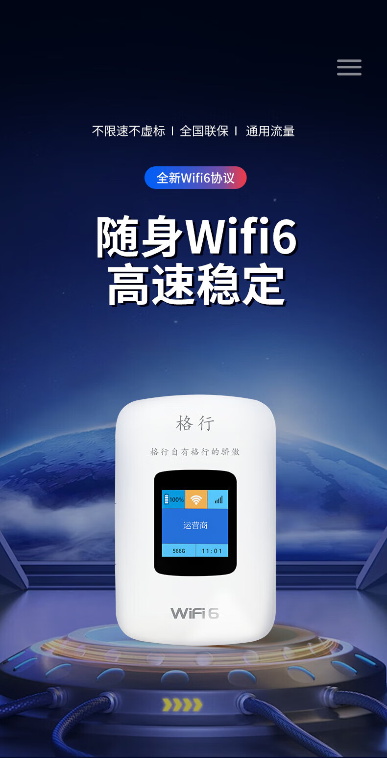 格行随身wifi6无线wifi免插卡移动随身wifi2025款新疆云南可用新疆云南专用通用带有屏幕彩屏款 云南专用版移动网-除新疆西藏--全国可用+5年质保