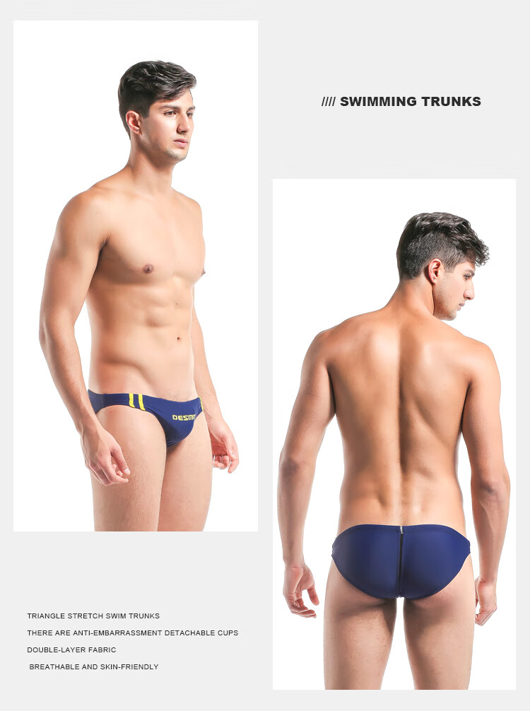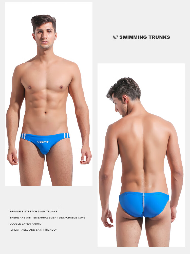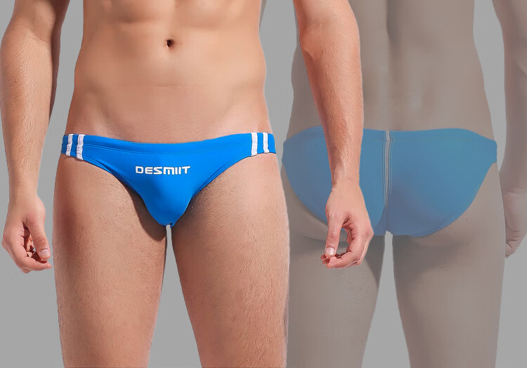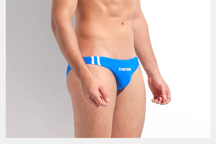 DESMIIT窄边三角泳裤男士海边性感专业低腰泡温泉泳衣男生大码速干游泳裤 蓝色 2XL