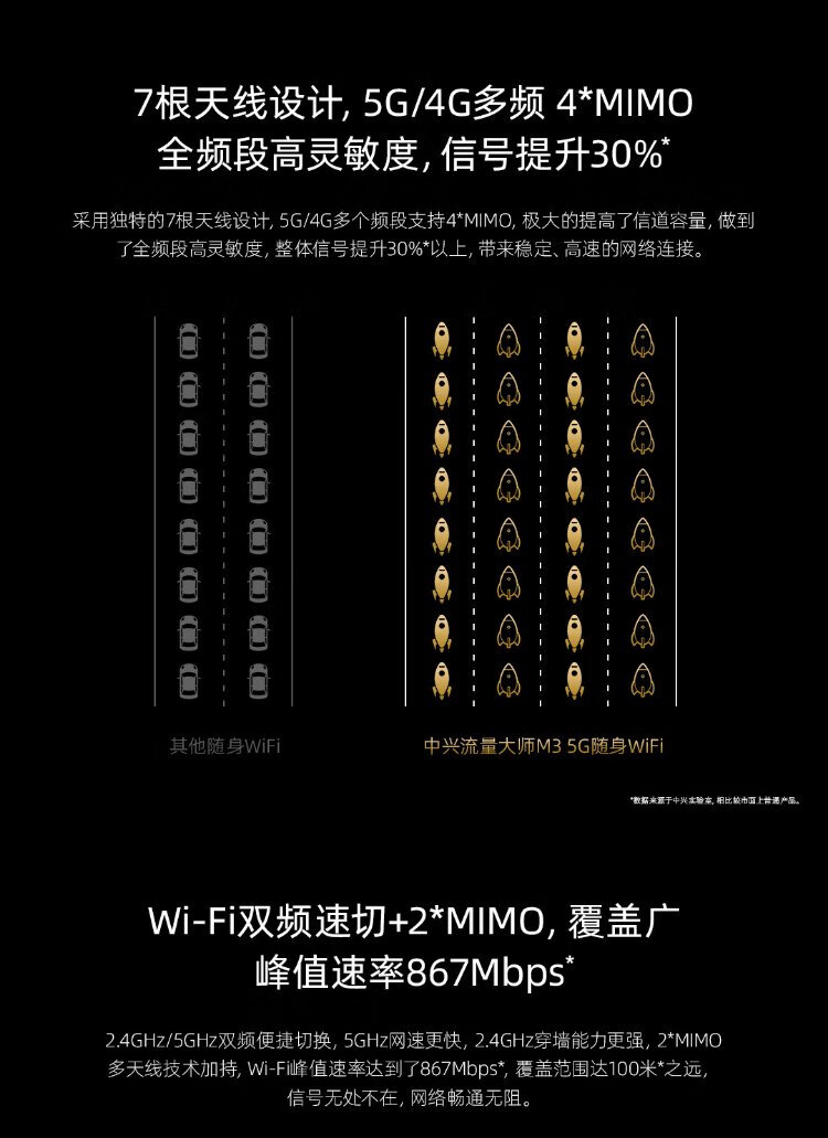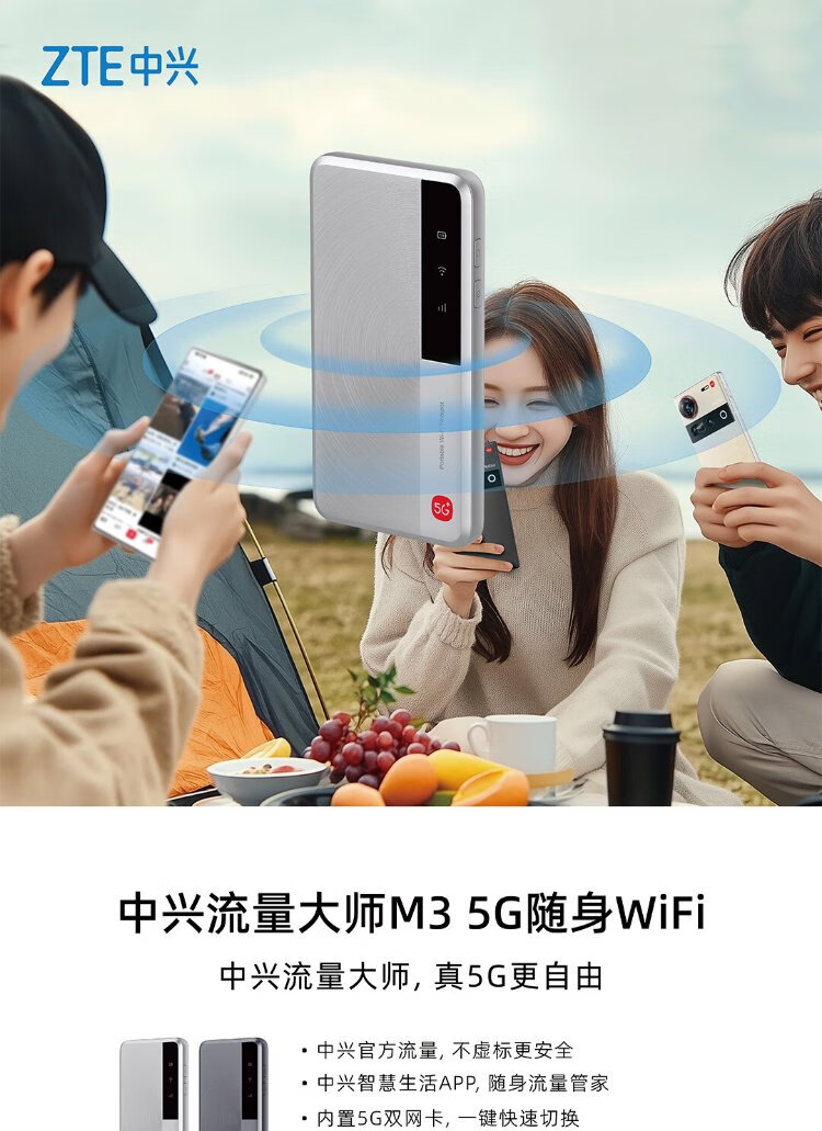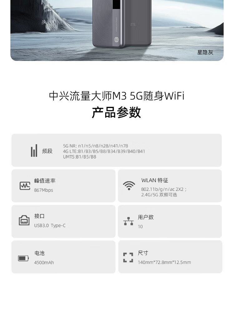 ZTE M3 Original 5G Portable WiFi Mobile Unlimited Speed Unlimited Wireless Network Card Router Full Netcom Three Netcom Car National Universal Traffic 2025 Portable Super New Product ZTE 5G Portable WiFi Dual Netcom Star Hidden Gray Mobile Unicom Dual Network One-click Switch-4500 mAh Battery