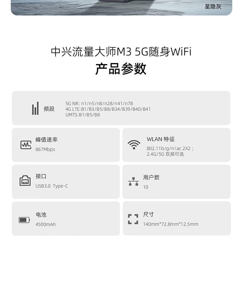 ZTE Traffic Master 5G 2024 nuevo producto M3 portátil wifi red dual sin tarjeta móvil inalámbrico Internet montado en camión hotspot portátil M3 estrella oculta gris 5G conmutación de red dual sin tarjeta