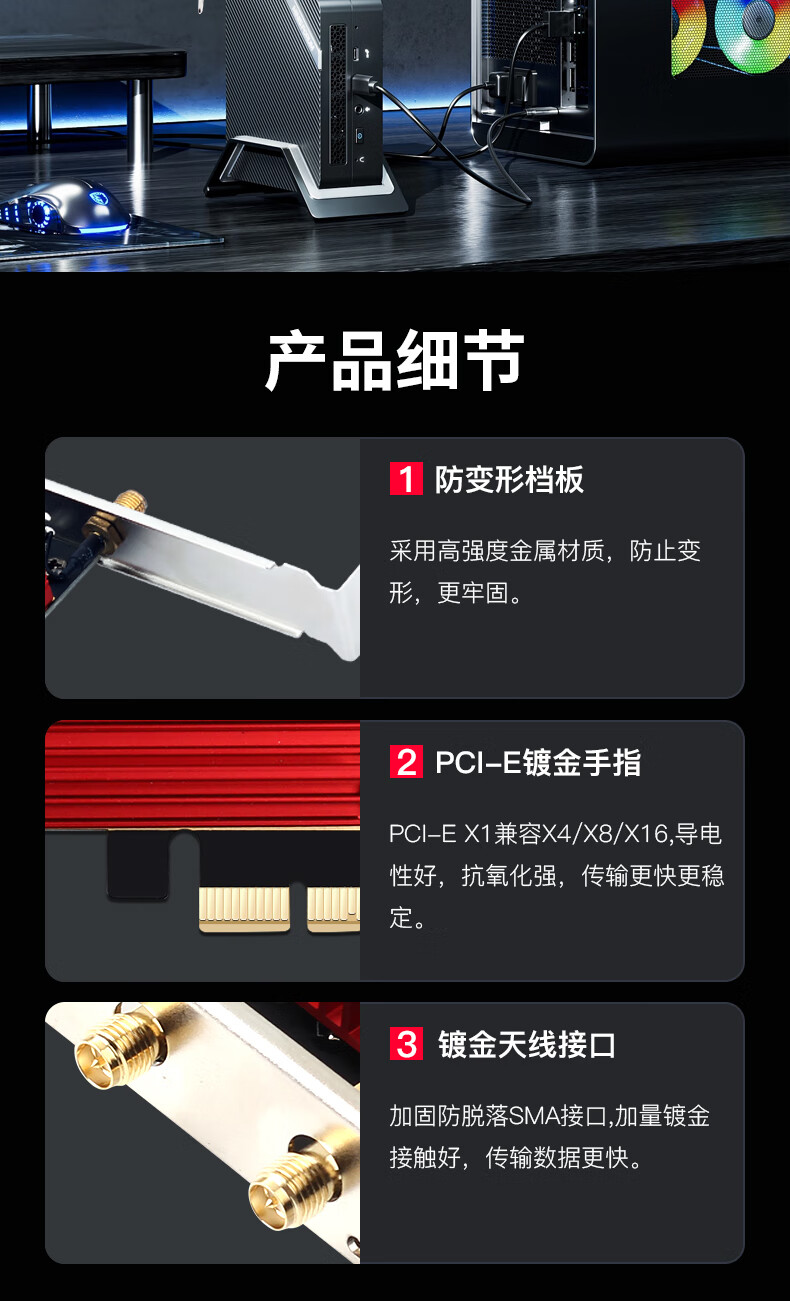PCIe-Wireless-Netzwerkkarte AX210 Desktop-Computer WLAN-Empfänger Gigabit-Netzwerkkarte 5G Dualband Wireless Bluetooth Zwei-in-One-Desktop-Spiel E-Sport integrierte Netzwerkkarte WiFi6 AX900 Home Entertainment
