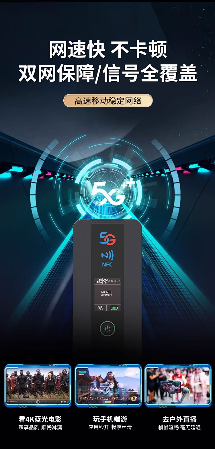 怀光长纵5G双频【高通wifi模组】随身wifi6免插卡便携式车载热点无线网卡移动路由器户外直播神器2025款 5G双模双频 高配版(高通WIFI6)+NFC功能