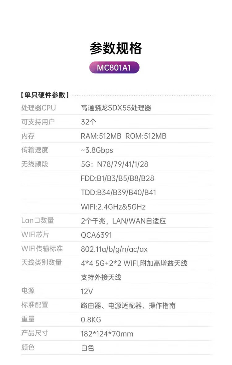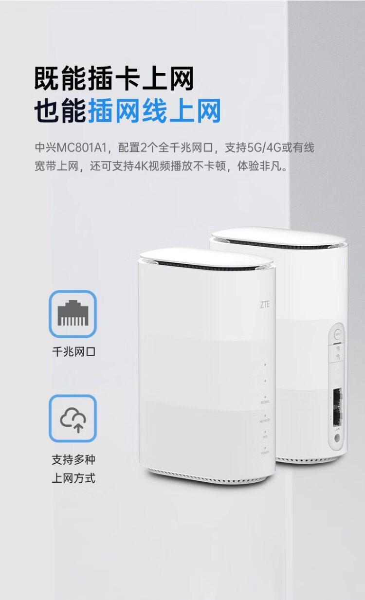 ZTE non-machine card integrated 5G CPE portable wifi6 car mobile wireless card router enterprise-level card home office MC801A1 ZTE MC801A1 5G/4G full network free mobile Unicom card