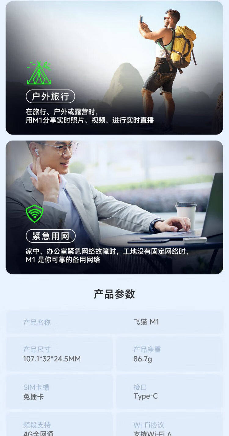Flying Cat M1 Enrutador inalámbrico móvil WiFi portátil WiFi6 Tres redes a nivel nacional Tráfico universal ilimitado de alta velocidad Tarjeta de Internet portátil para punto de acceso para automóvil Modelo 2025 M2 / M8 Flying Cat M1 | Modelo King + Batería 2500 mAh