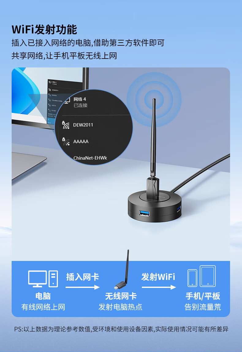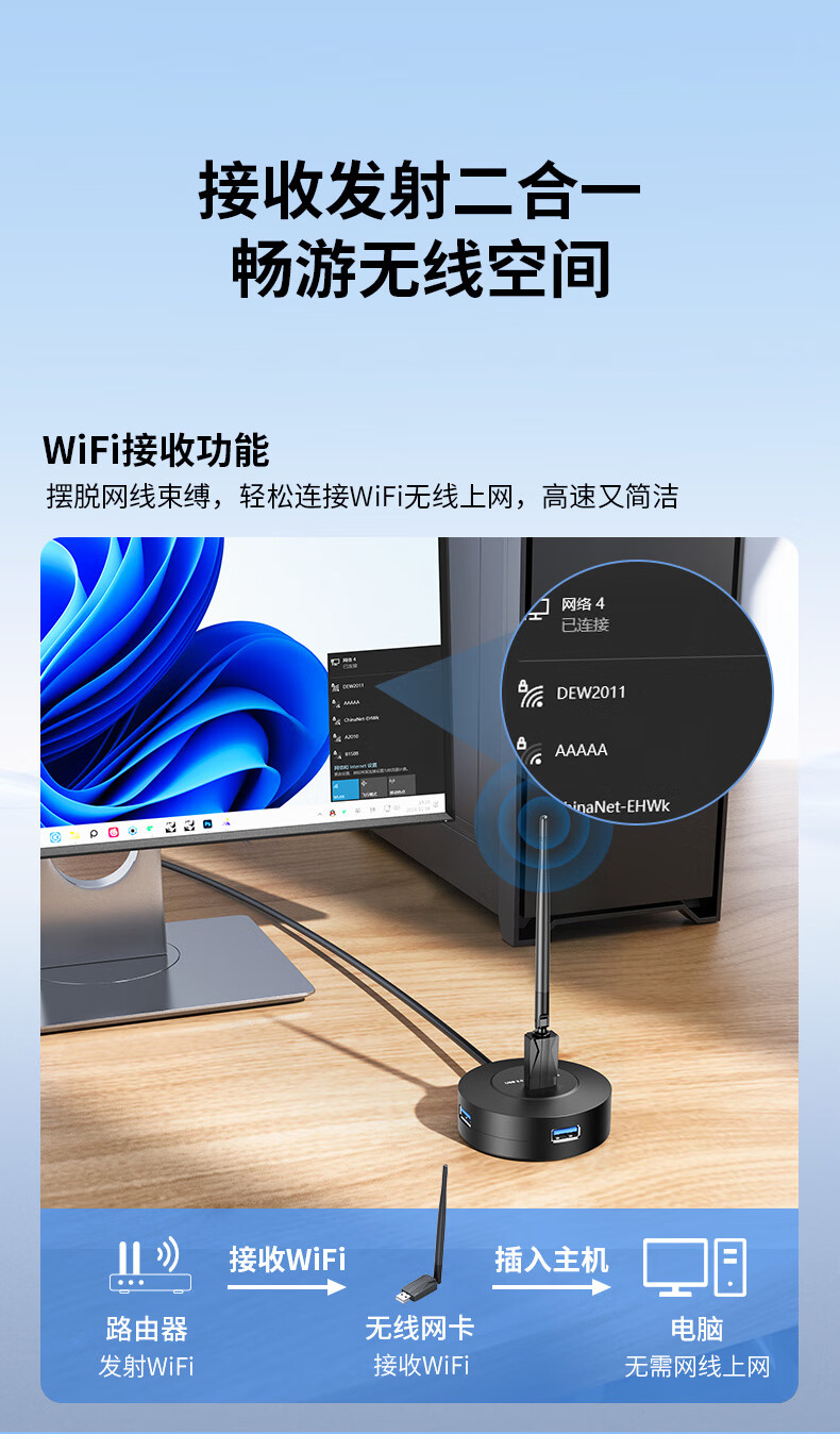 千兆USB无线网卡台式机专用高速双频5G穿墙笔记本电脑wifi接收器发射器WIFI6 【免驱版】150M无线网卡/mini款