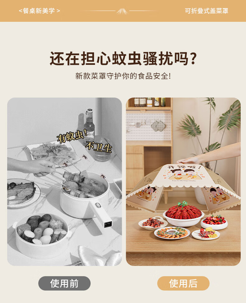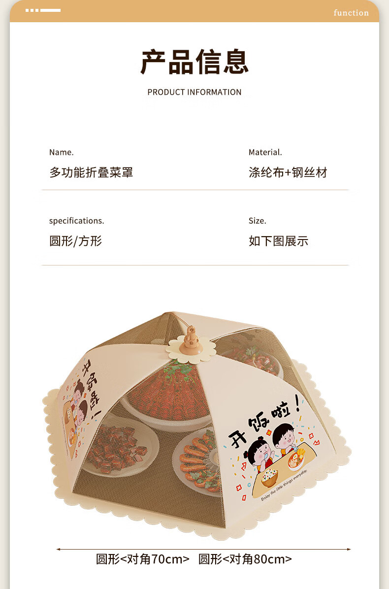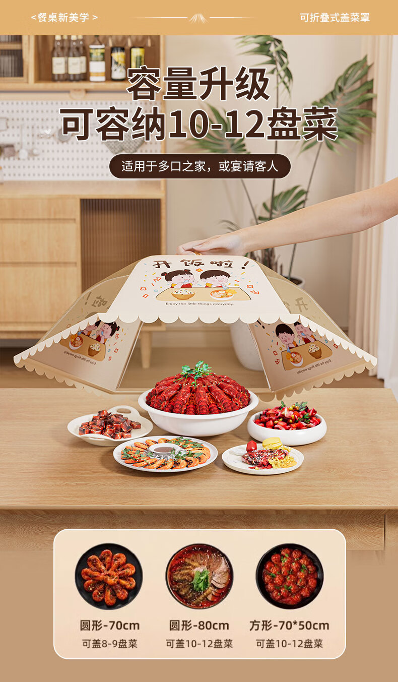 Чехол для посуды Youna, новый домашний обеденный стол 2025 года, на который можно положить мух, складной пылезащитный чехол, крышка для хранения остатков еды, крышка для посуды, круглая, 80 см, покрывает около 7-8 блюд