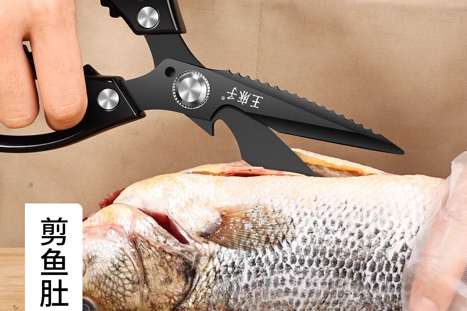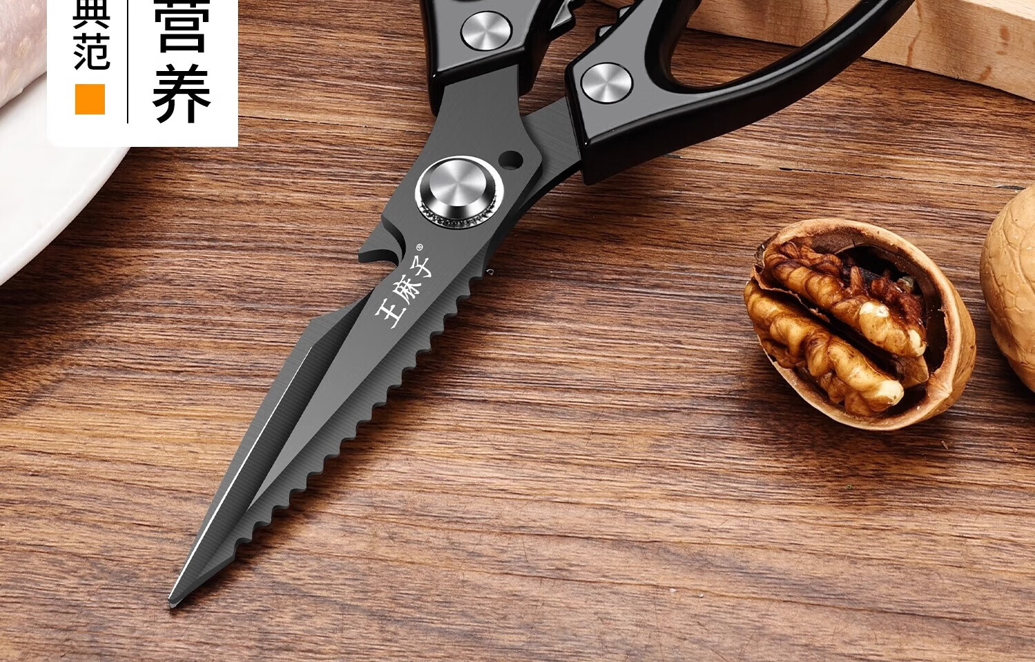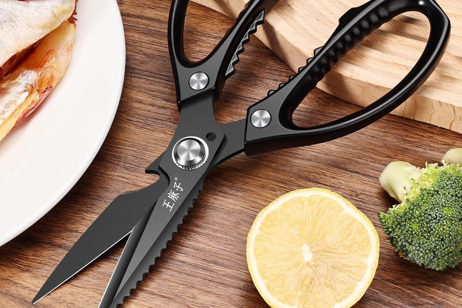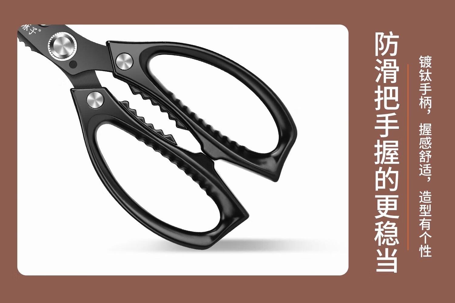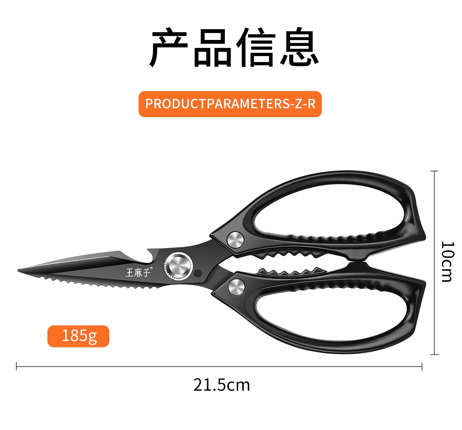 Wang Mazi kitchen scissors, stainless steel powerful black titanium chicken bone scissors, multi-purpose scissors for cutting ingredients and bones, special for commercial fish killing, obsidian scissors for hard bones