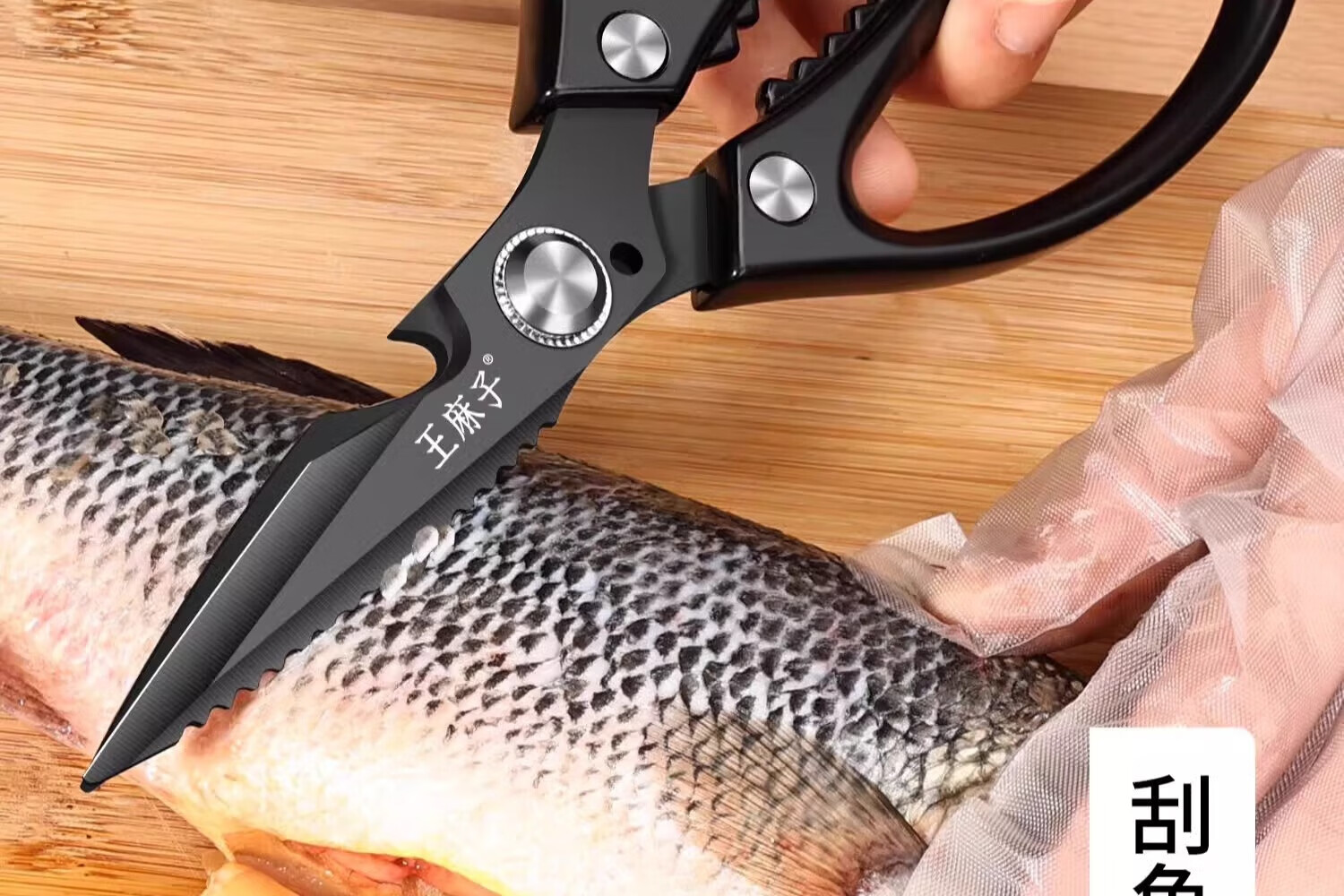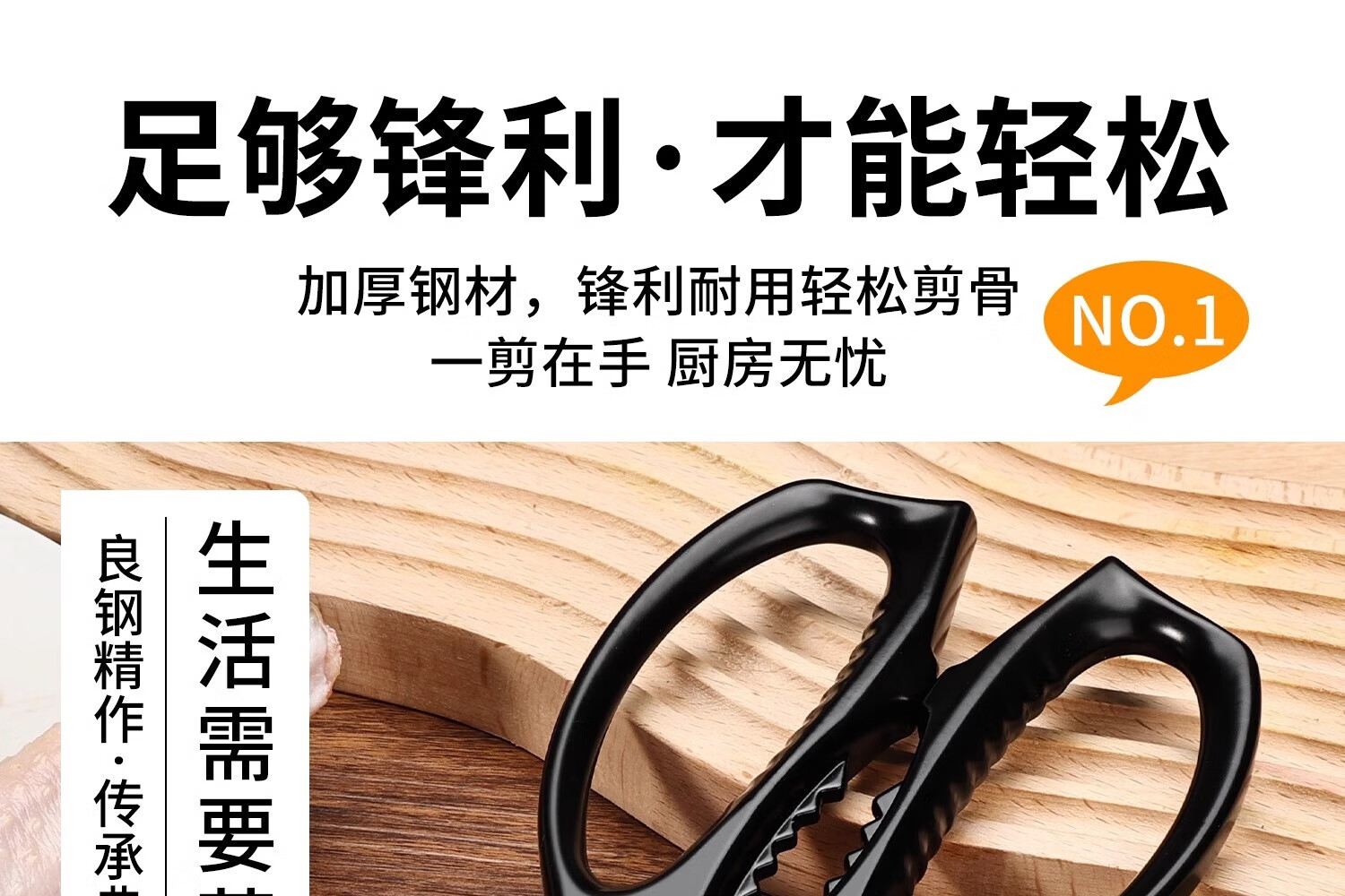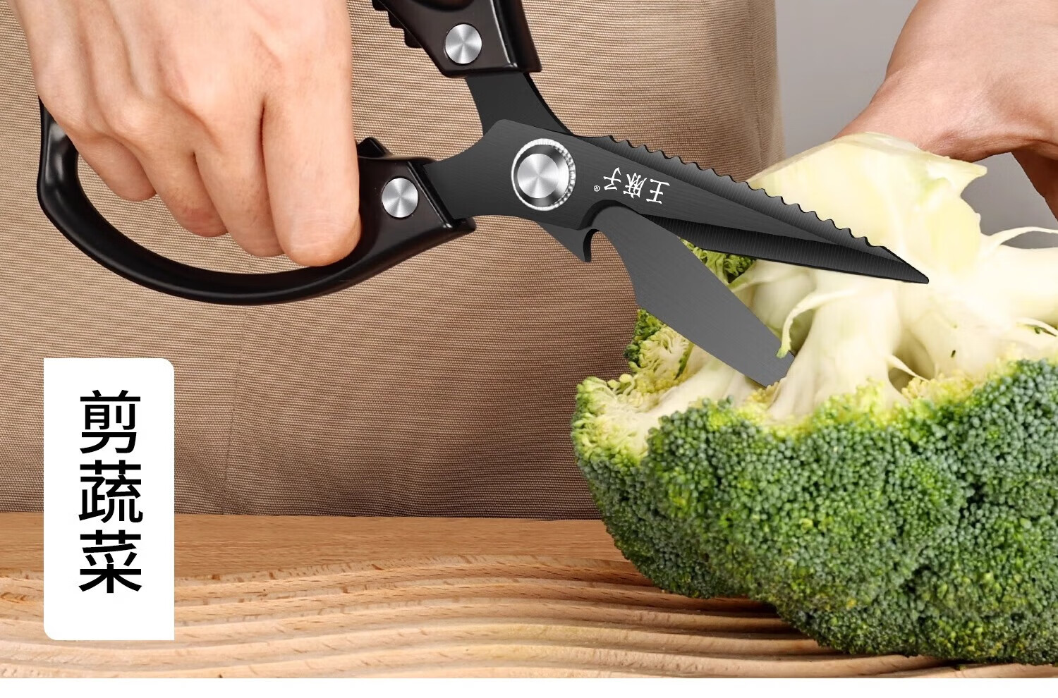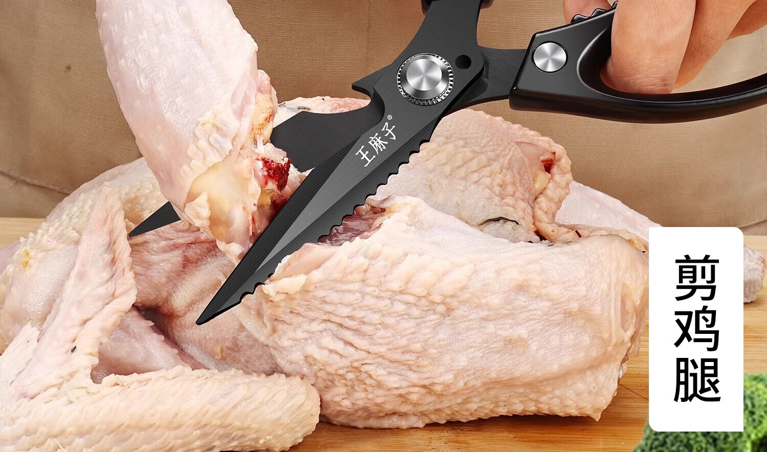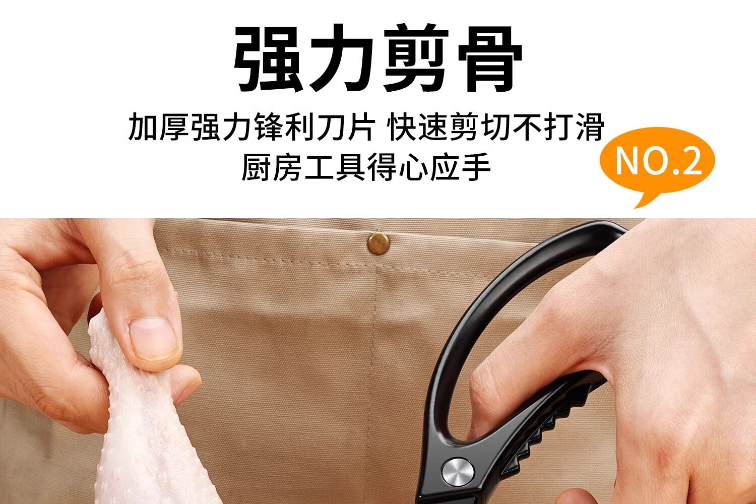 Wang Mazi kitchen scissors, stainless steel powerful black titanium chicken bone scissors, multi-purpose scissors for cutting ingredients and bones, special for commercial fish killing, obsidian scissors for hard bones