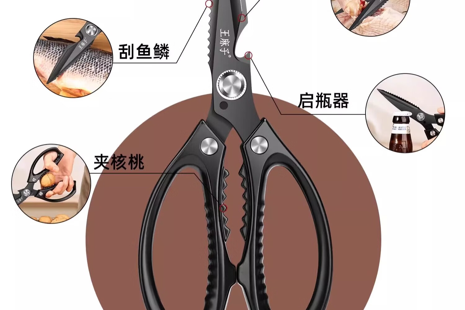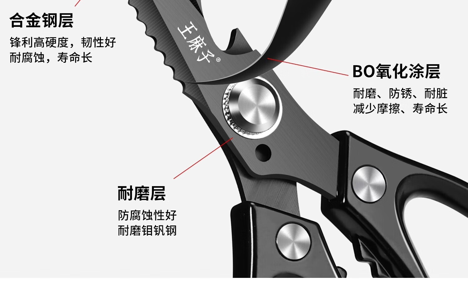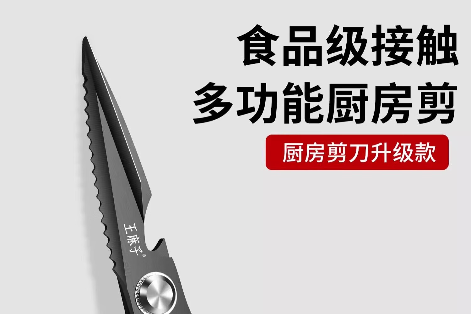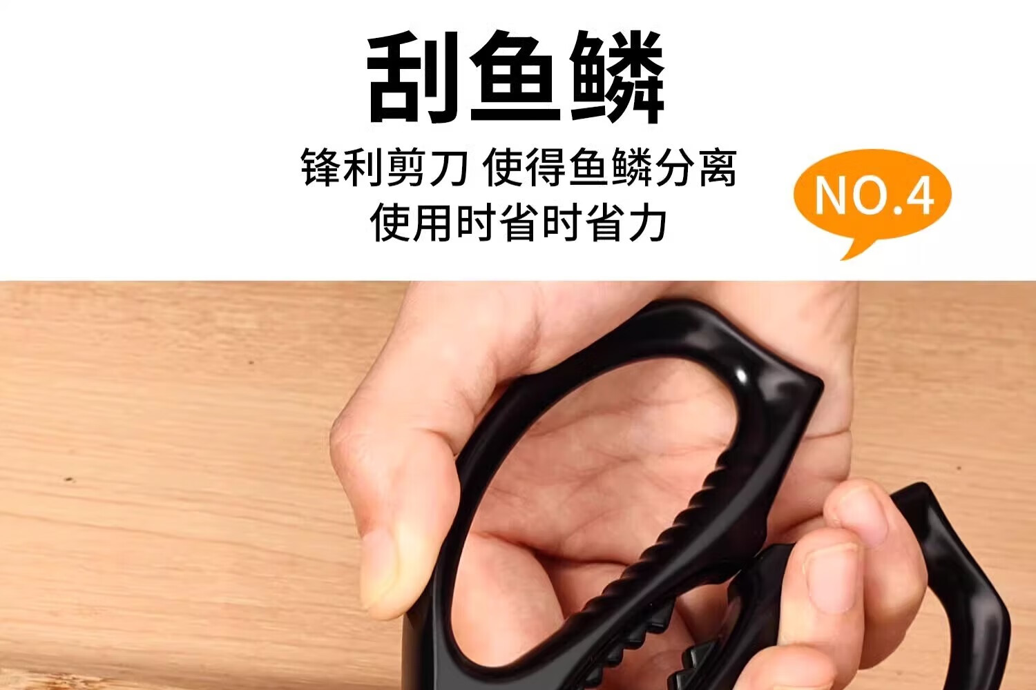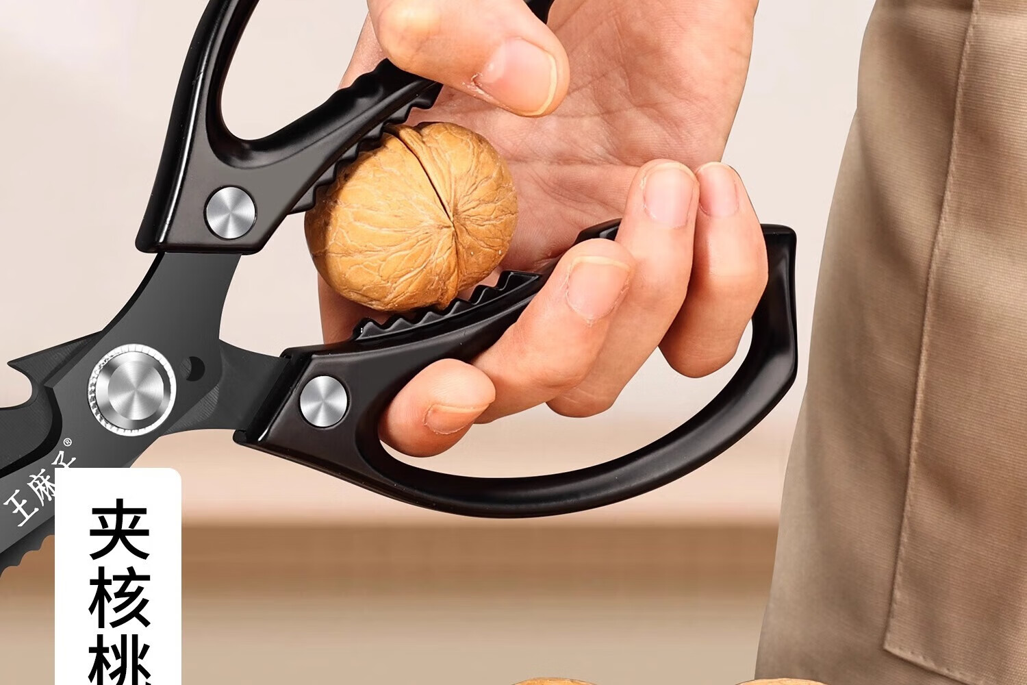 Wang Mazi kitchen scissors, stainless steel powerful black titanium chicken bone scissors, multi-purpose scissors for cutting ingredients and bones, special for commercial fish killing, obsidian scissors for hard bones