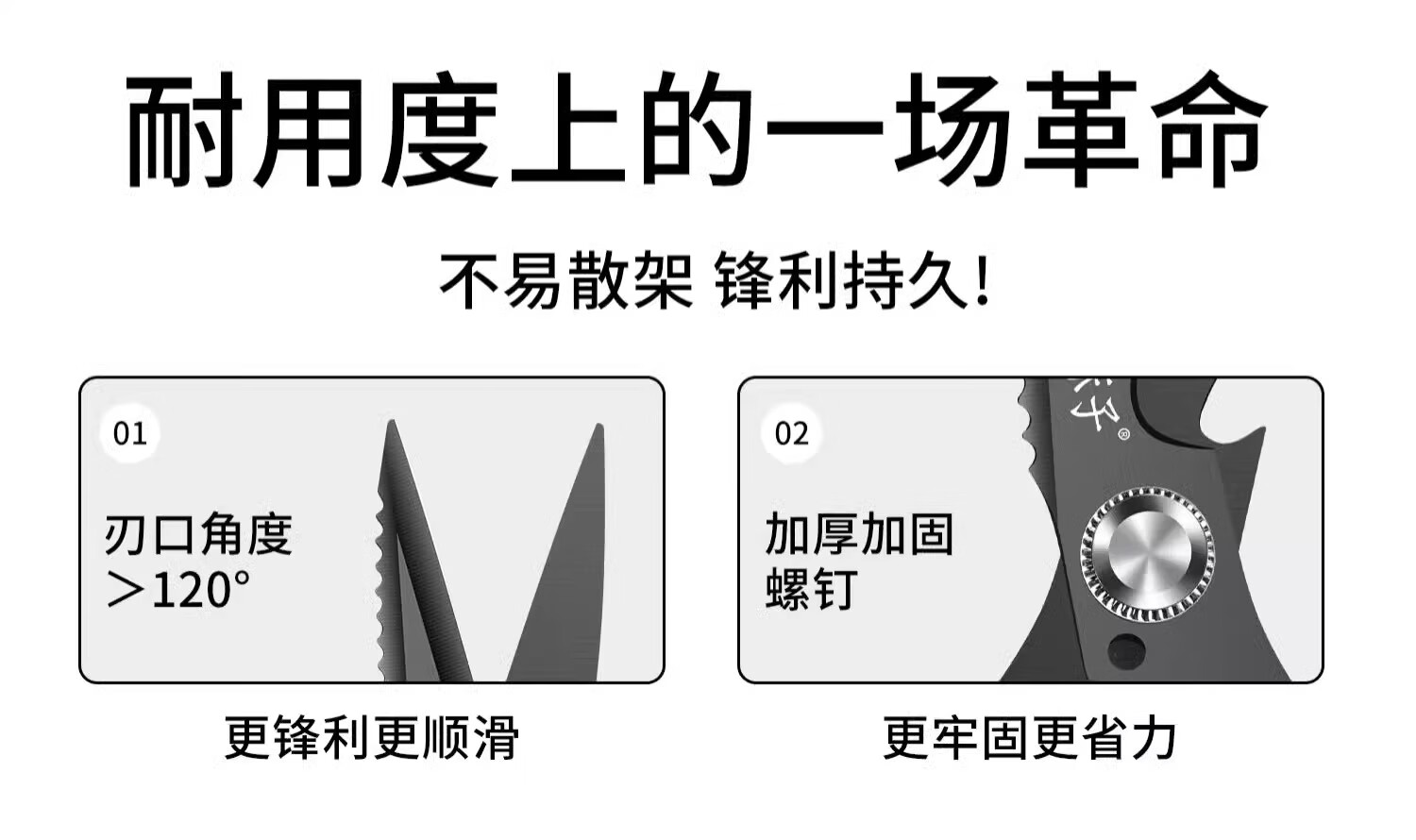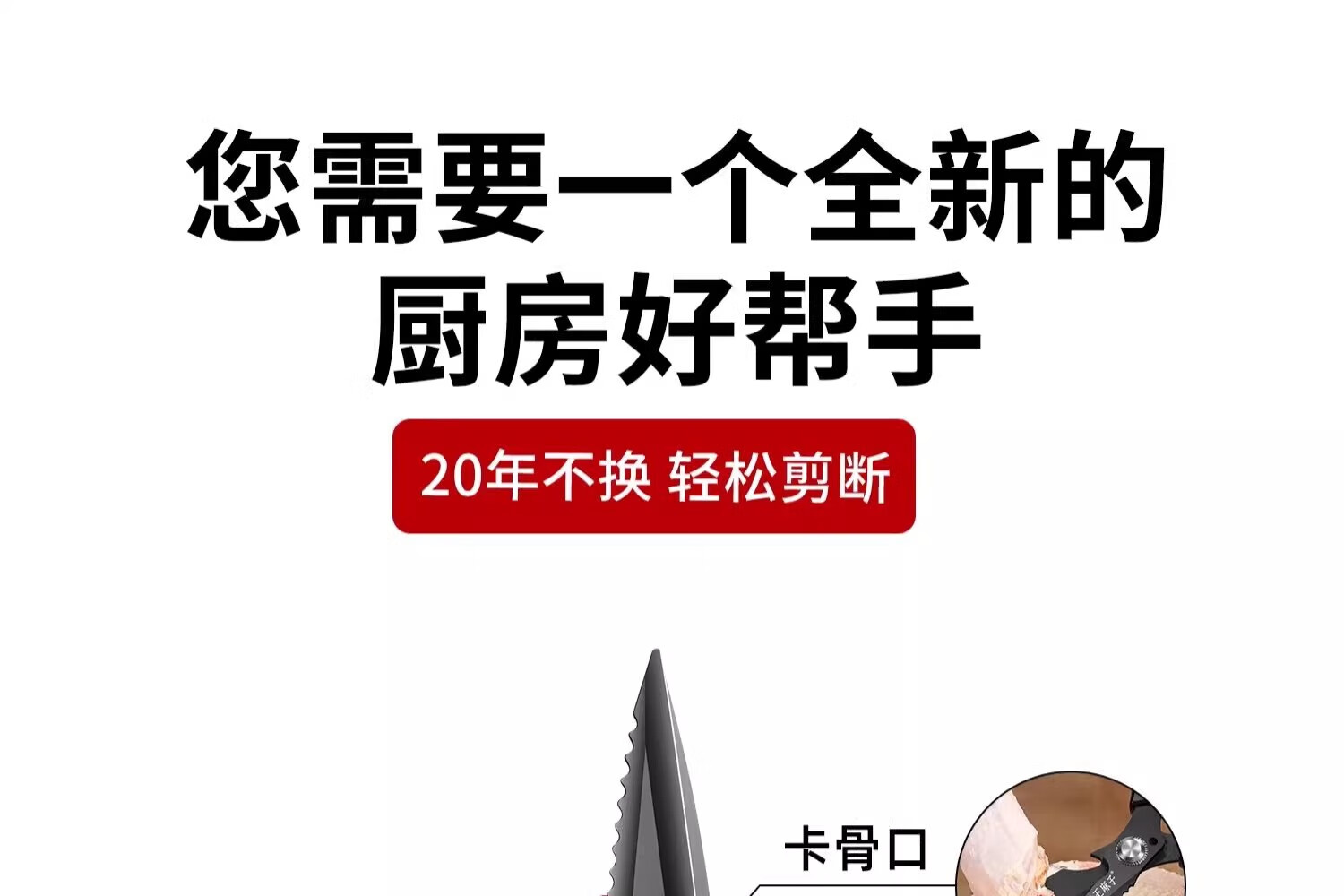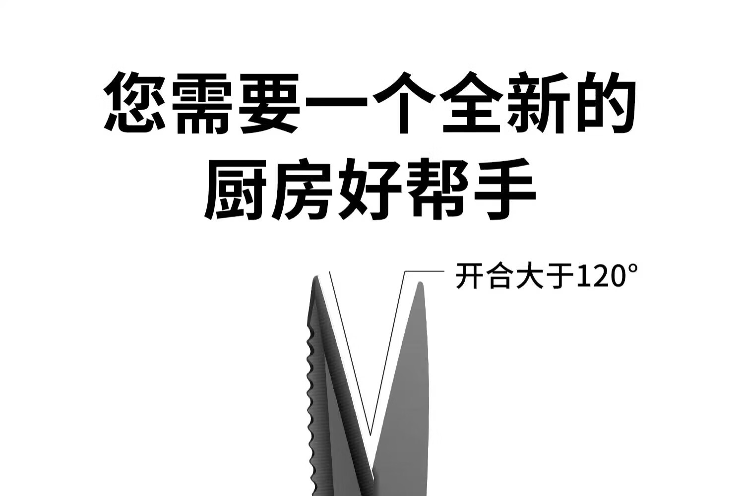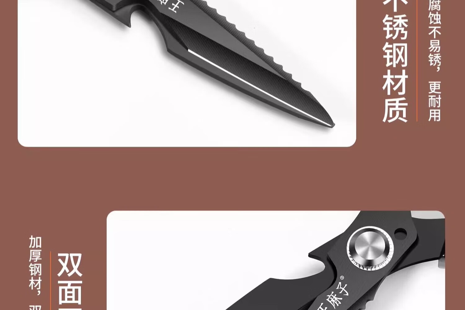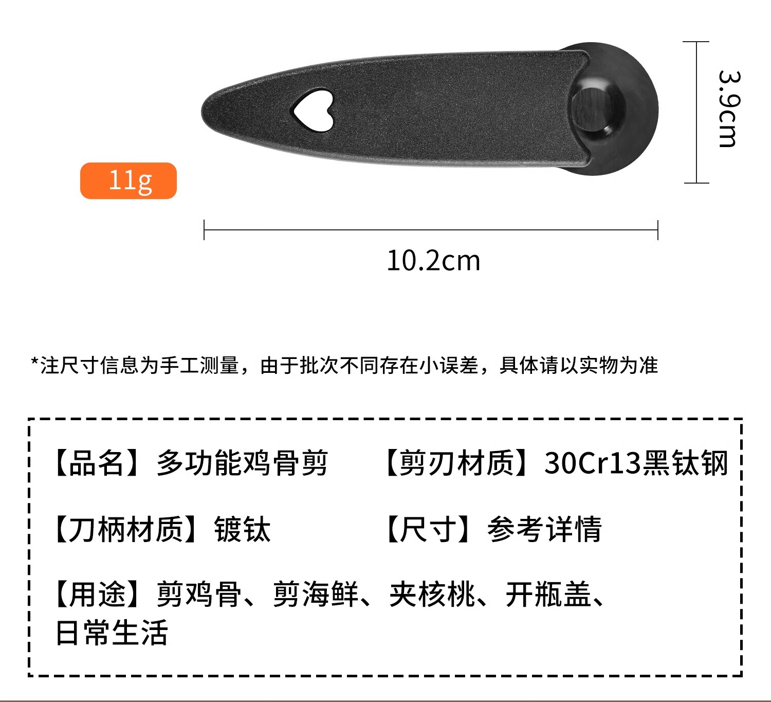 Wang Mazi kitchen scissors, stainless steel powerful black titanium chicken bone scissors, multi-purpose scissors for cutting ingredients and bones, special for commercial fish killing, obsidian scissors for hard bones