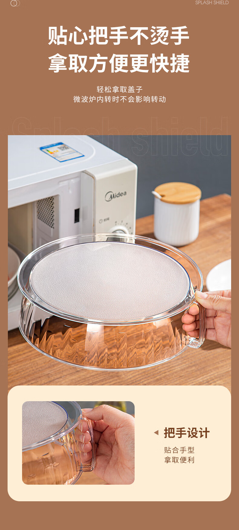 胖东来同款微波炉防溅盖耐高温碗盖子家用饭菜罩食品级塑料微波炉 PC食品级材质【加高款】