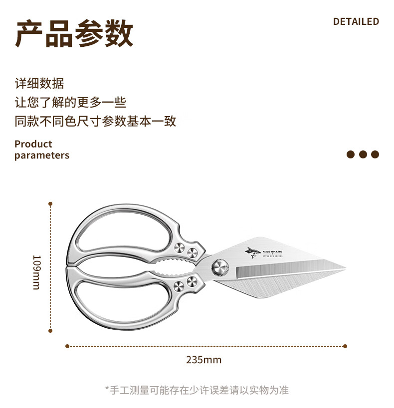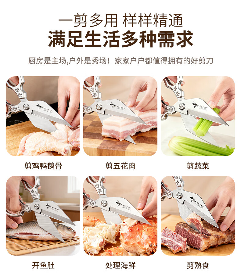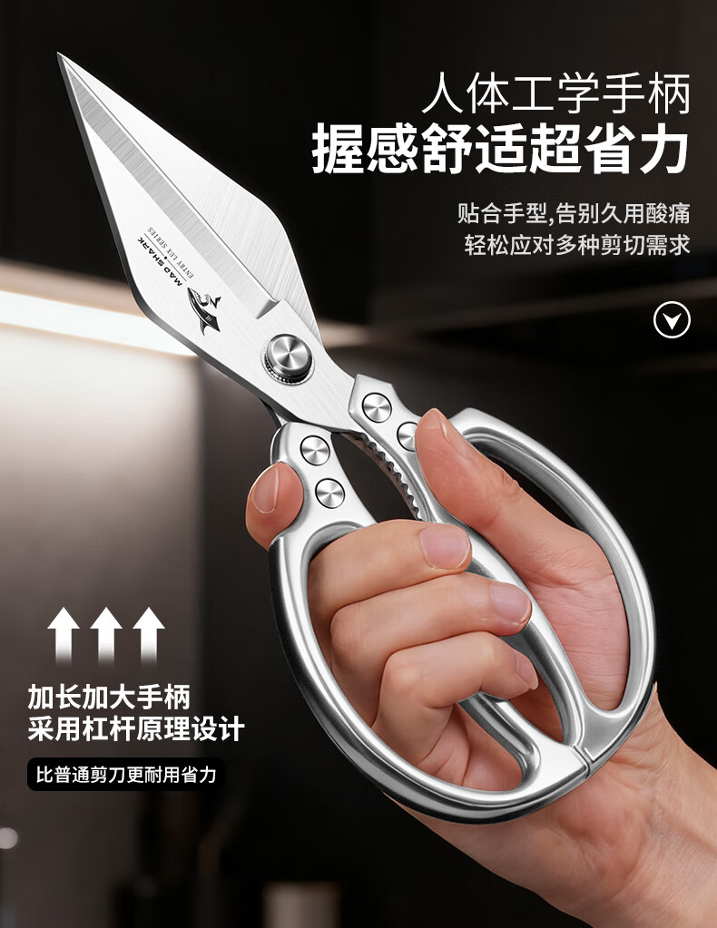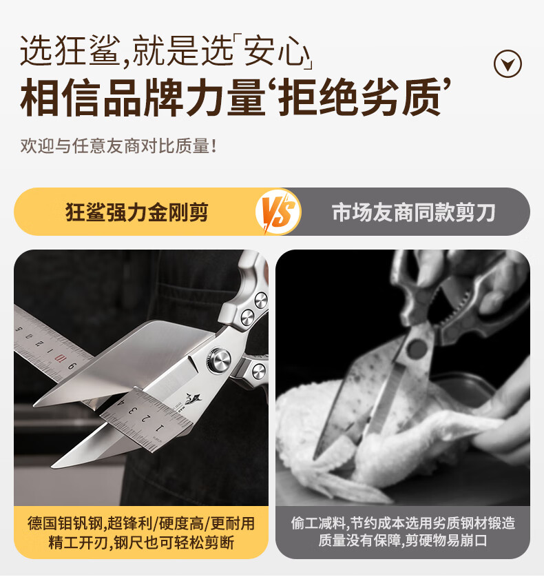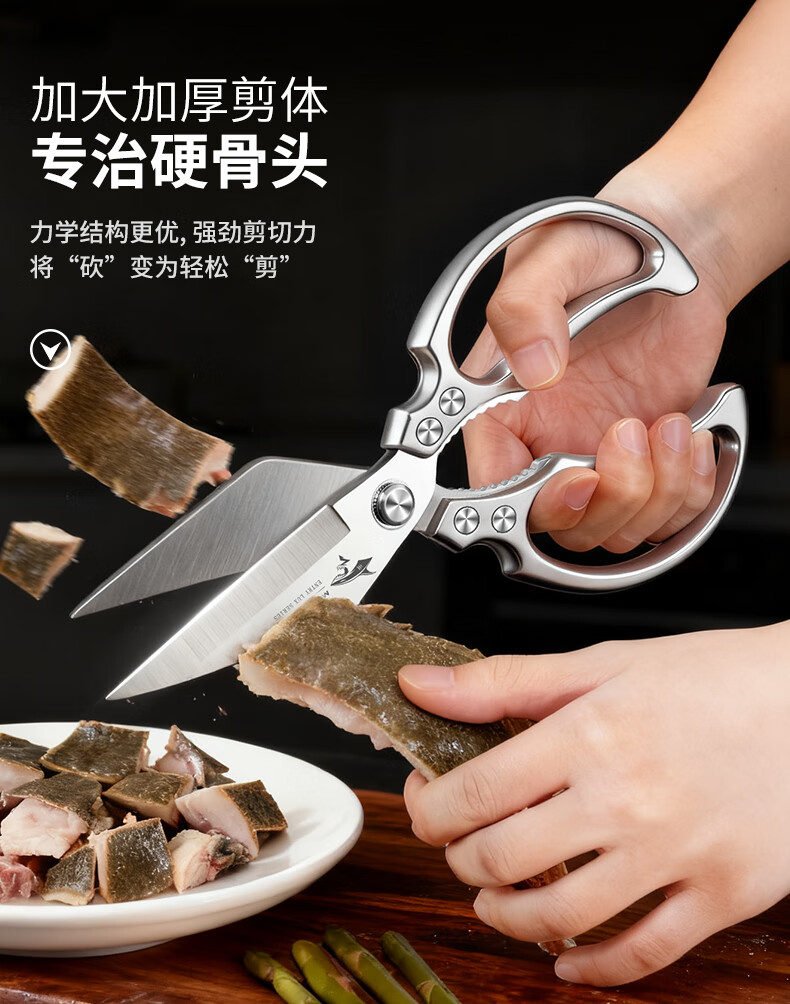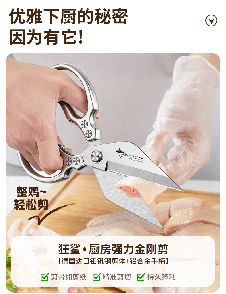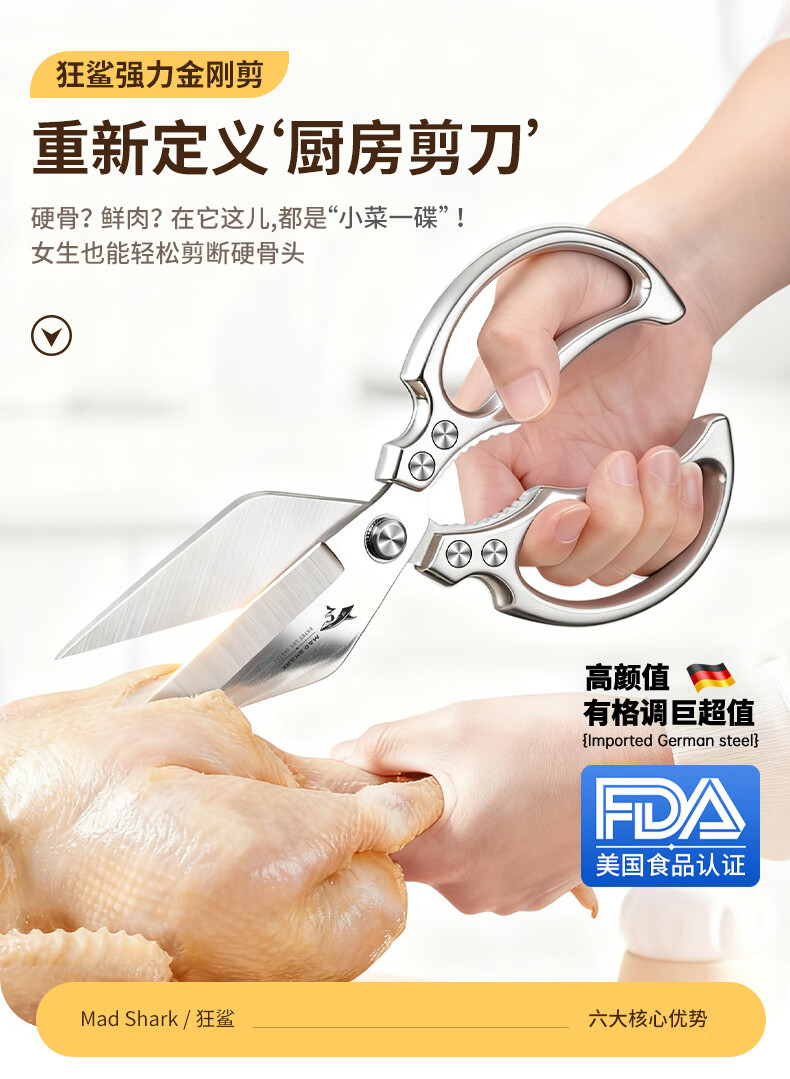 MAD SHARK German crazy shark imported scissors for kitchen special strong shears for chicken, duck and goose bones food scissors food grade stainless steel strong gold steel chicken bone shears