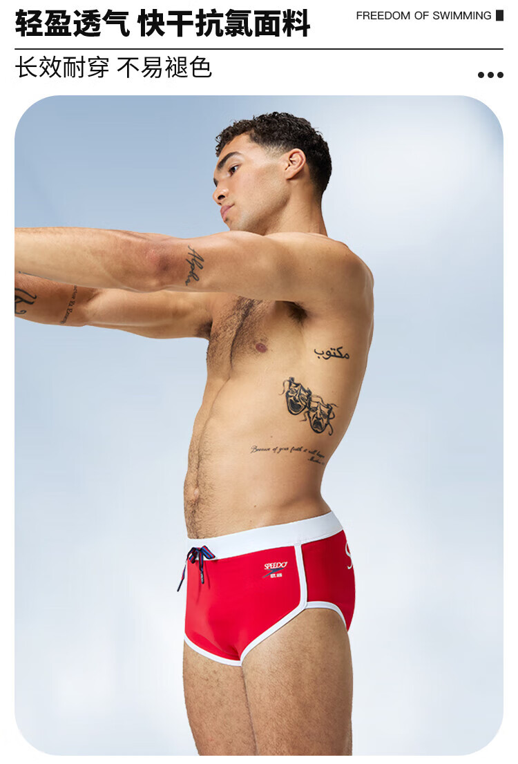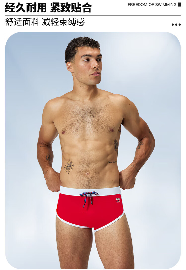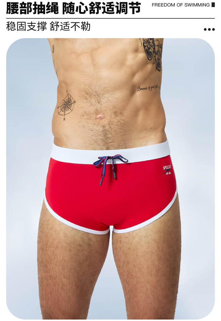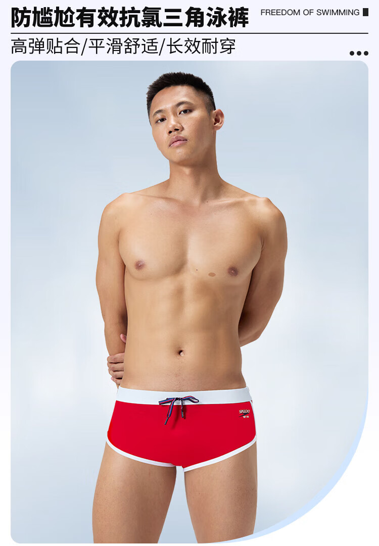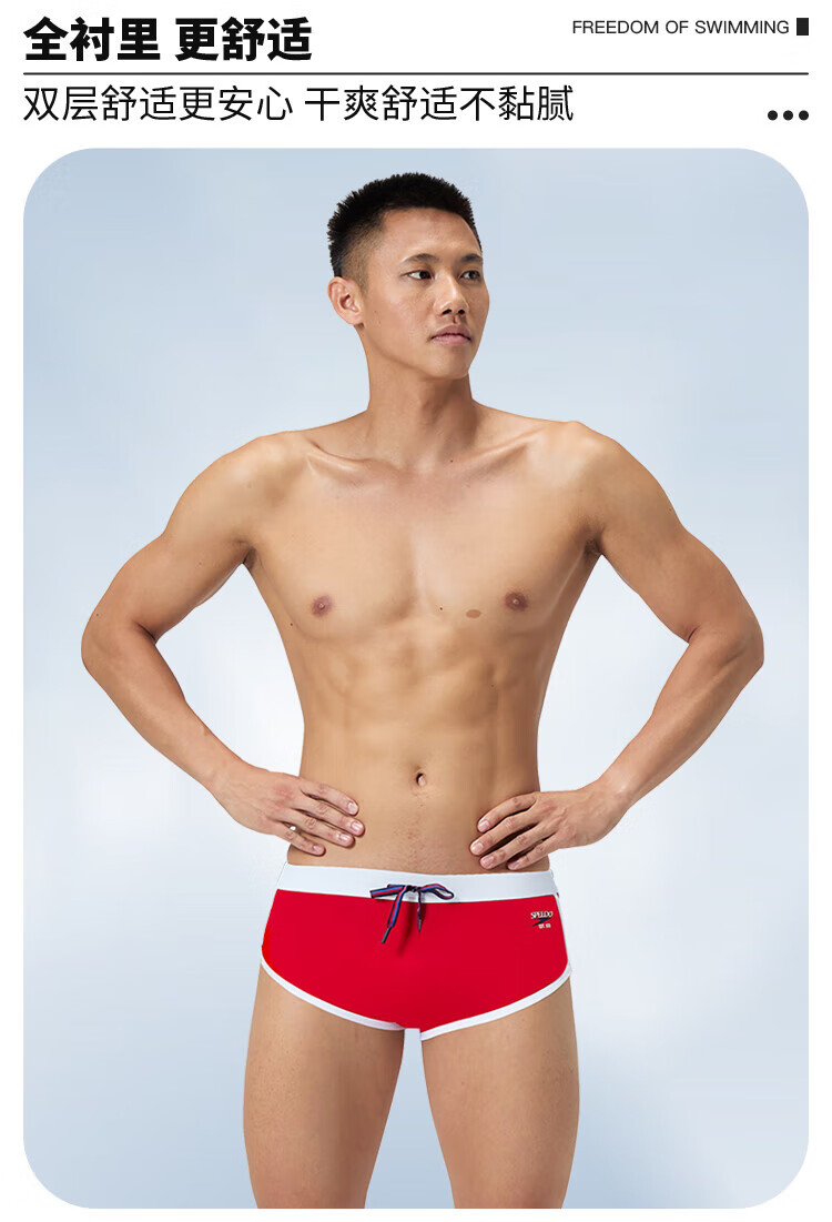 Speedos 25-jähriger neuer, anti-peinlicher, schnell trocknender Herren-Slip für das Schwimmtraining, modische Farbanpassung, professionelle Anti-Chlor-Badehose, Rot L (36) Größe 180/Gewicht 85 Taille/91