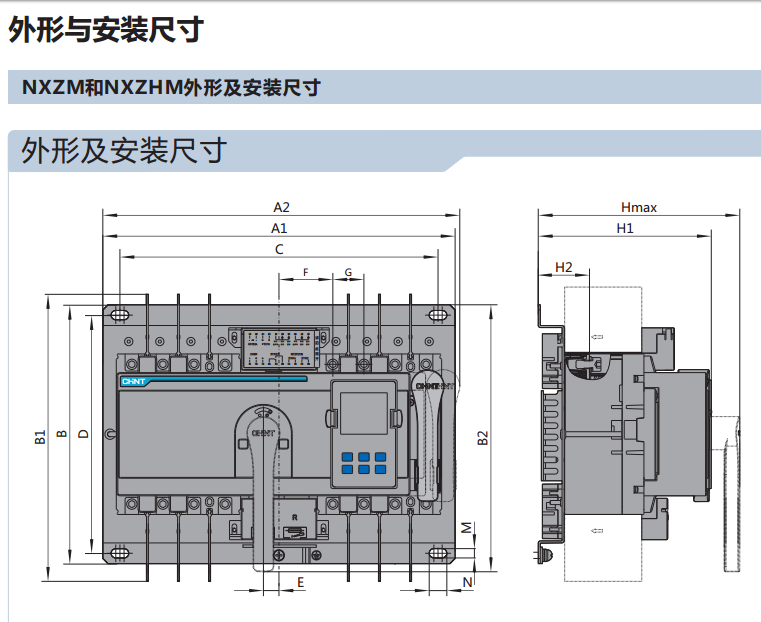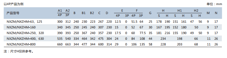 正泰双电源NXZHM NXZM 63A 250A 630A CB级 PC级自动切换转换开关 4P 4P NXZHM-63/4A25APC级