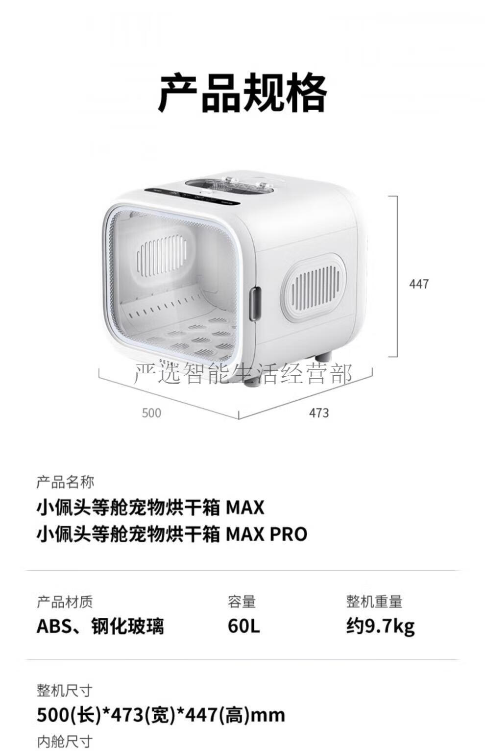 Xiaopei Haustier-Trockenbox MAX Katzentrockner Haartrockner zum Baden zu Hause und automatisches Wasserblasen für Hunde 60L Smart PRO-Modell-aktivierter Sauerstoff