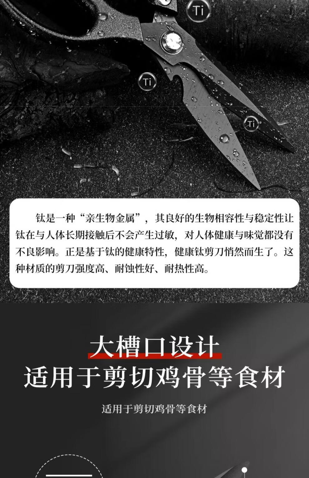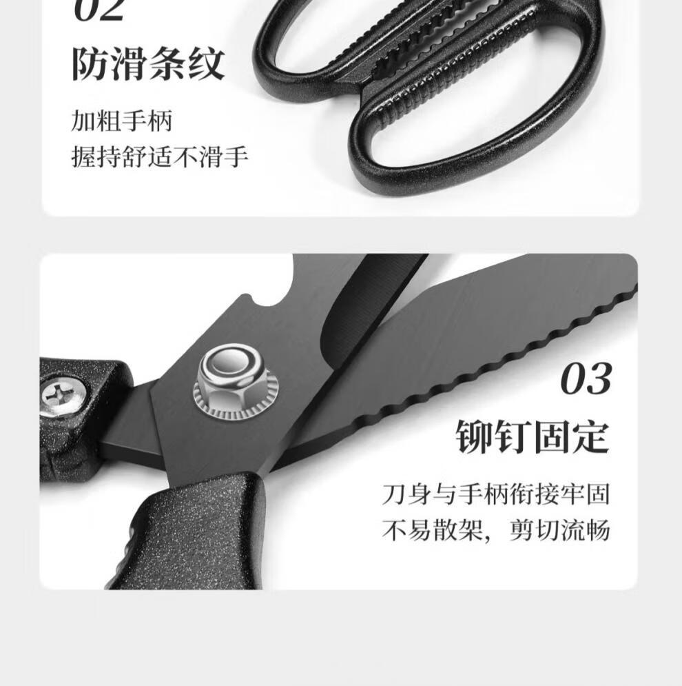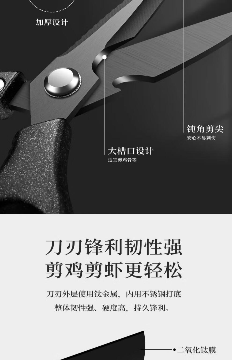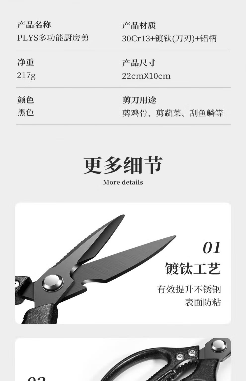PLYS Tijeras de cocina de acero inoxidable, tijeras especiales para huesos, tijeras multifuncionales para cortar huesos de carne y pescado, tijeras de alta dureza de grado alimenticio, tijeras de cocina de titanio negro, proceso de revestimiento de titanio