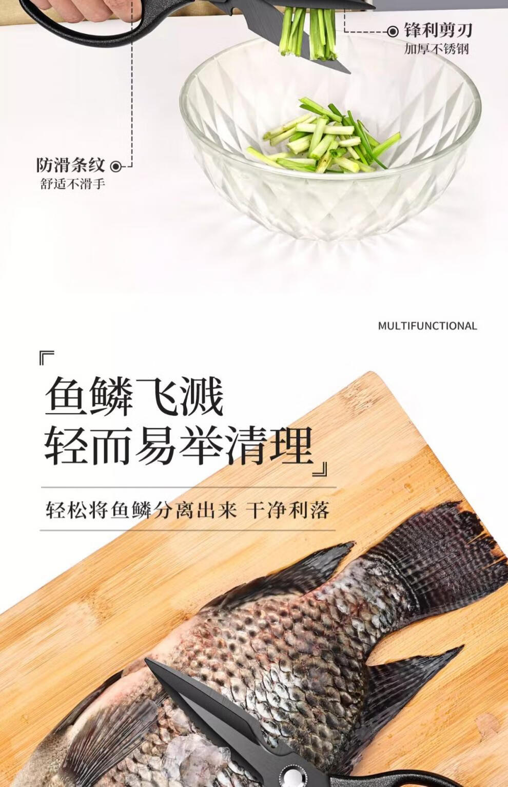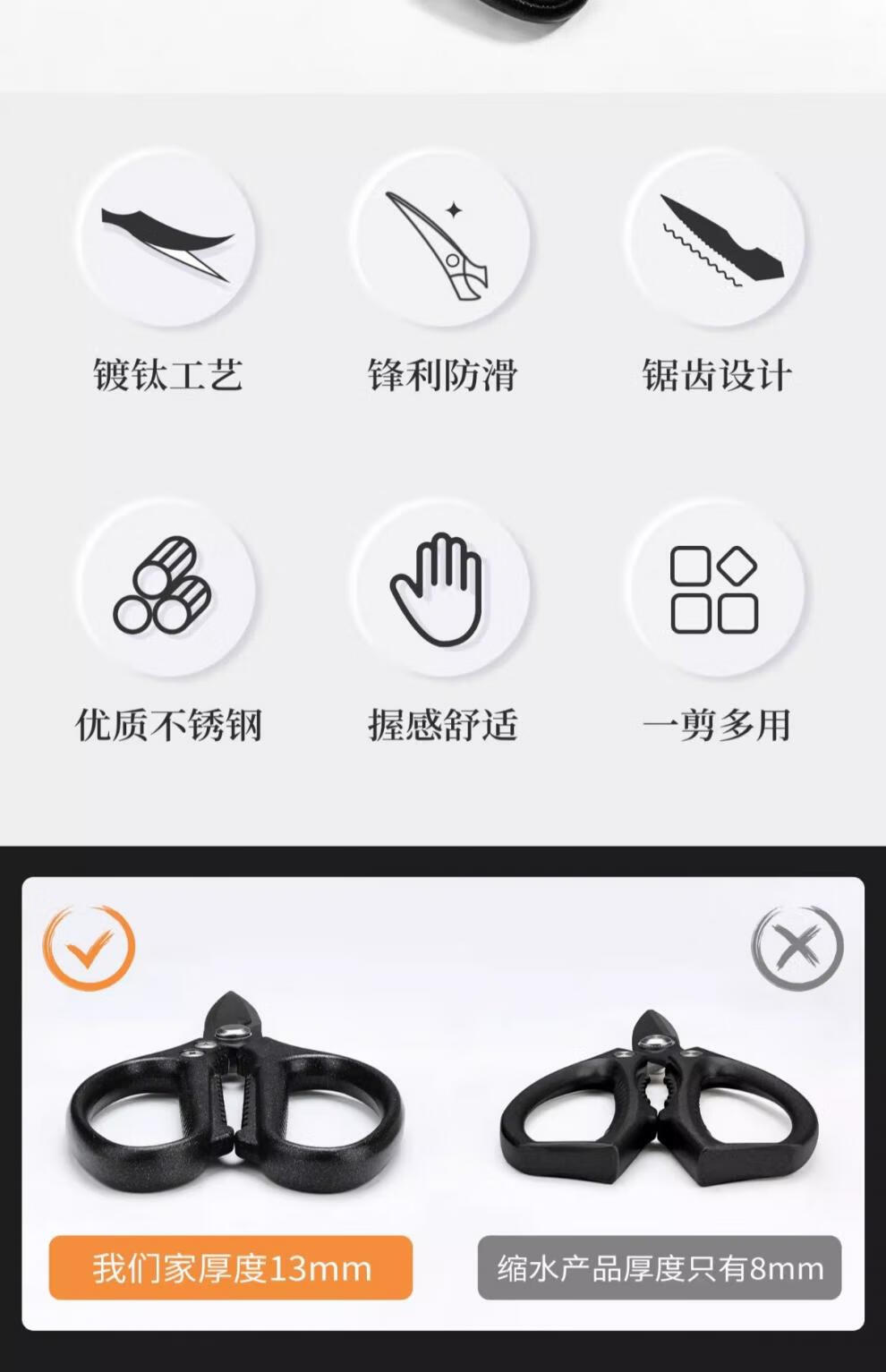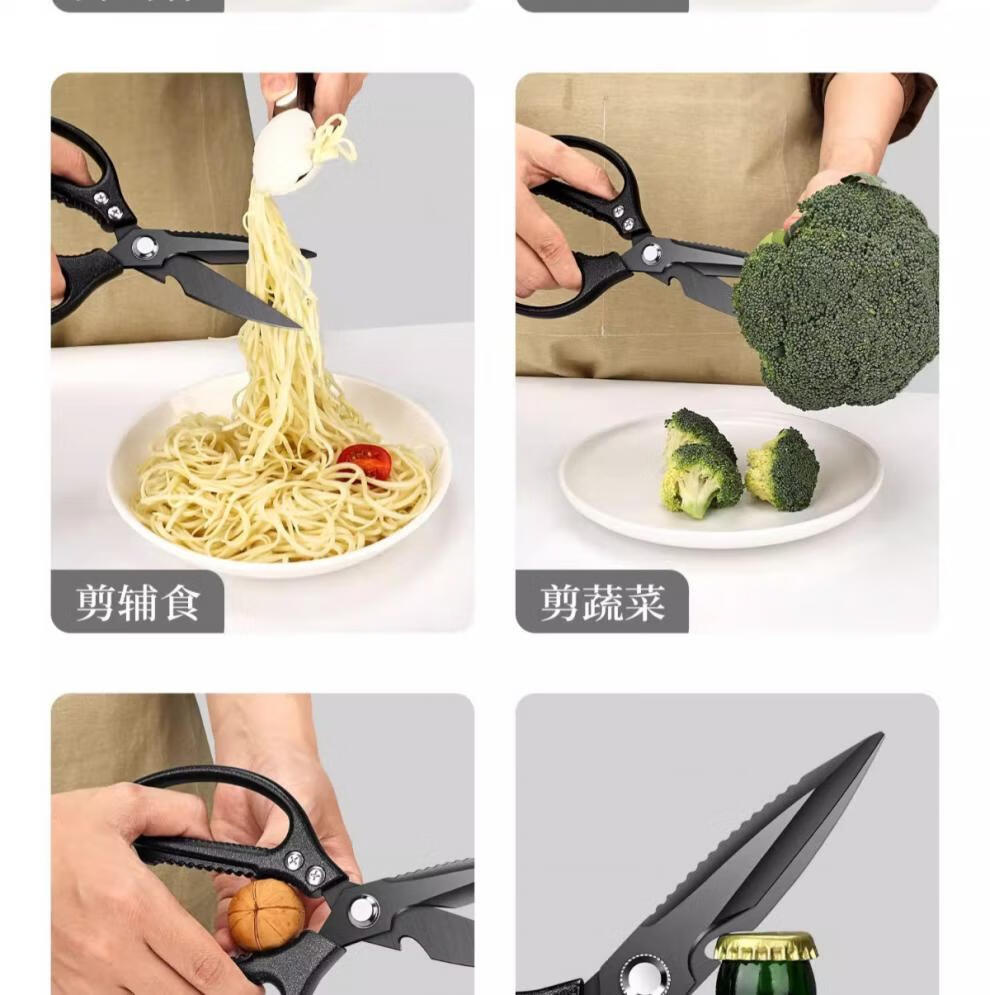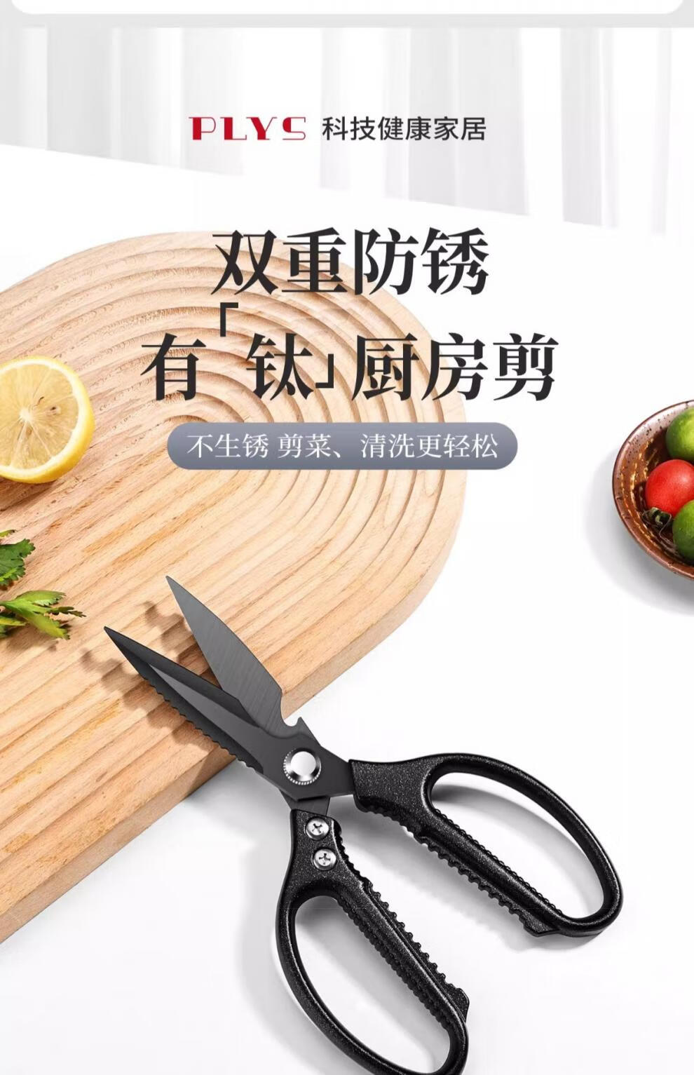 PLYS Tijeras de cocina de acero inoxidable, tijeras especiales para huesos, tijeras multifuncionales para cortar huesos de carne y pescado, tijeras de alta dureza de grado alimenticio, tijeras de cocina de titanio negro, proceso de revestimiento de titanio