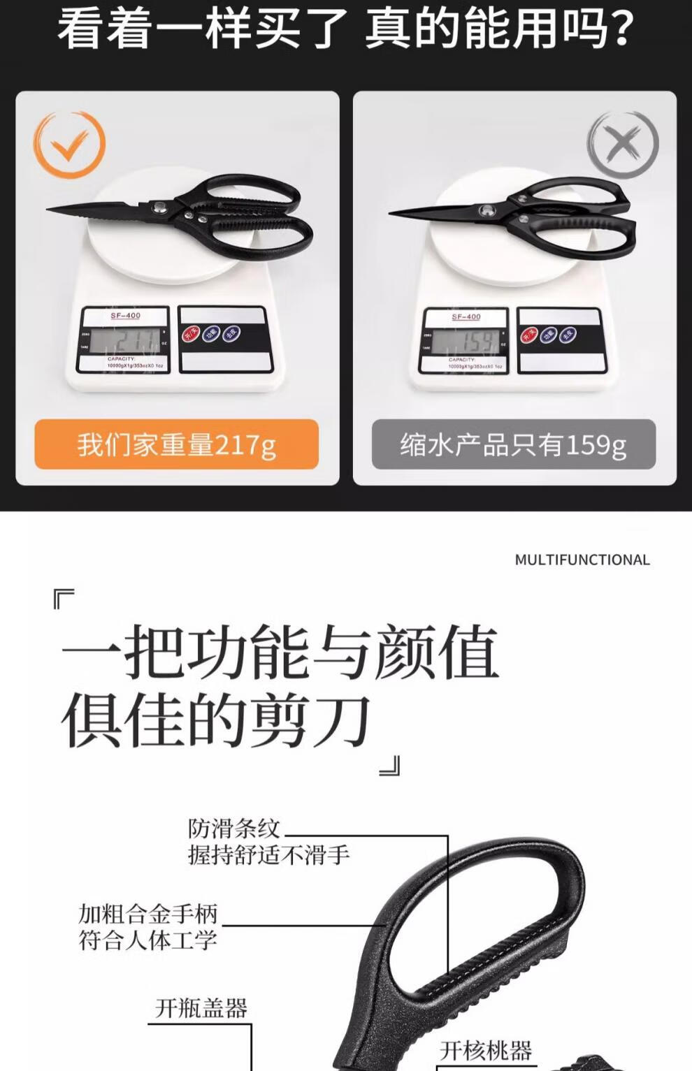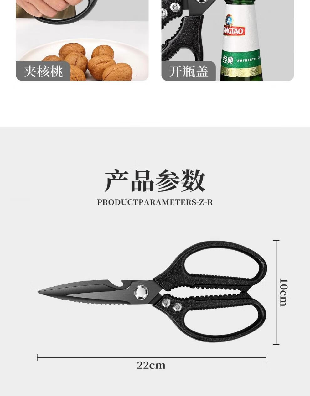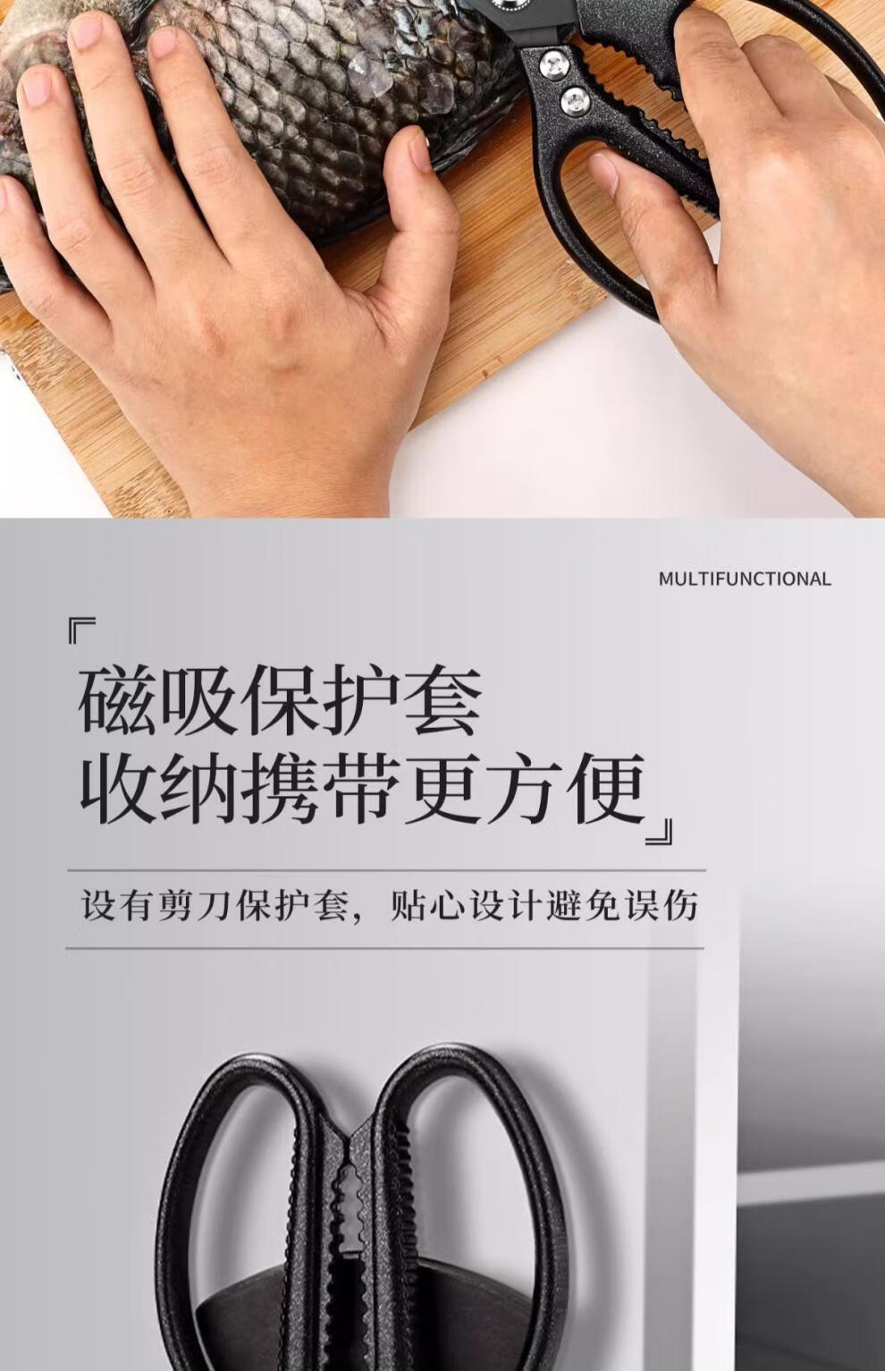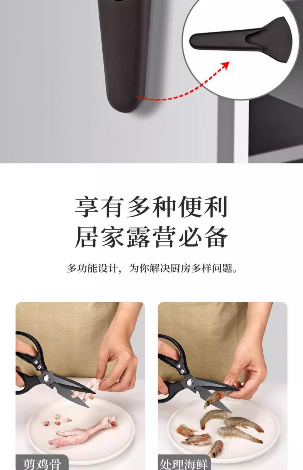 PLYS Tijeras de cocina de acero inoxidable, tijeras especiales para huesos, tijeras multifuncionales para cortar huesos de carne y pescado, tijeras de alta dureza de grado alimenticio, tijeras de cocina de titanio negro, proceso de revestimiento de titanio